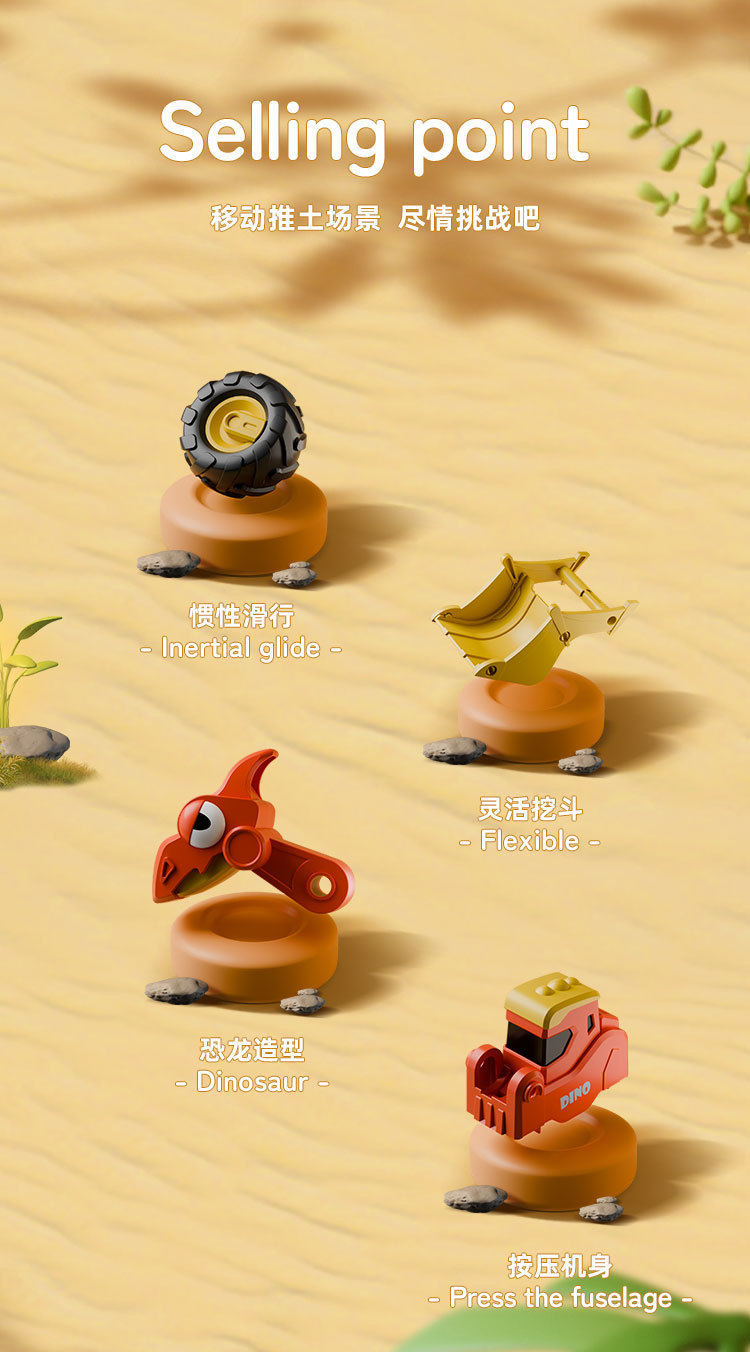 new crane machine press dinosaur engineering vehicle cross-border children's toys press sliding dinosaur car children's toys