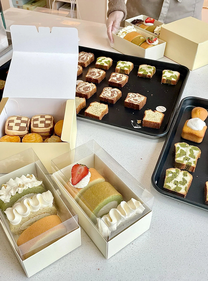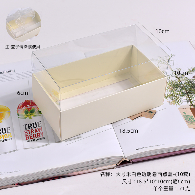 beige transparent roll dessert box * white cardboard