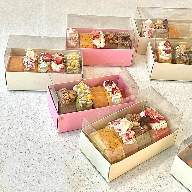 pink transparent roll dessert box * white cardboard