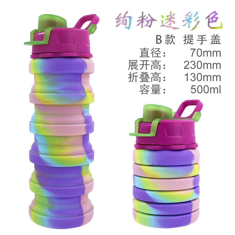 Material: Silicone bottle body + PP lid + aluminum alloy climbing buckle