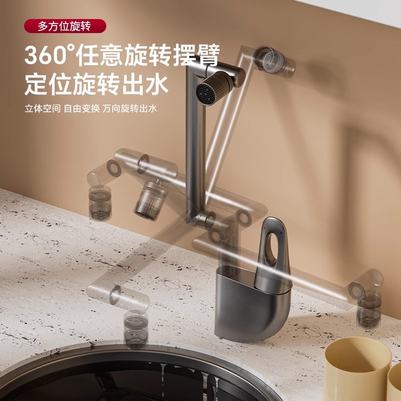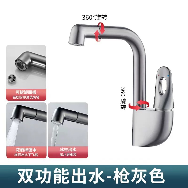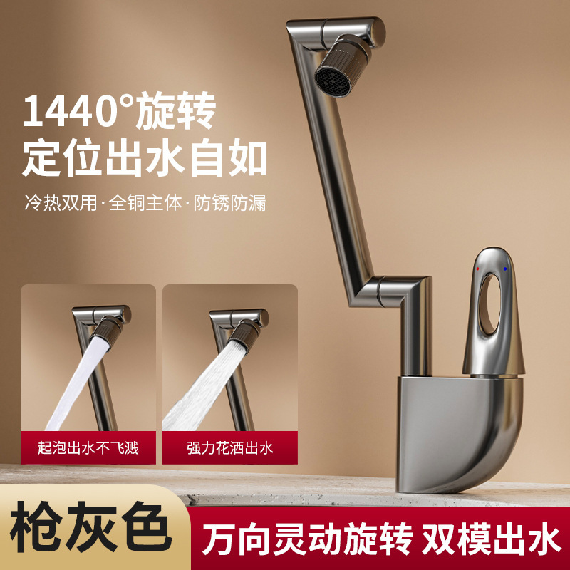 [gun gray] copper ingot double rotating mechanical arm dual-mode water outlet-60cm inlet pipe