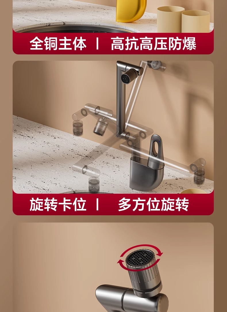 [electroplated] copper ingot double rotating mechanical arm dual-mode water outlet-60cm inlet pipe