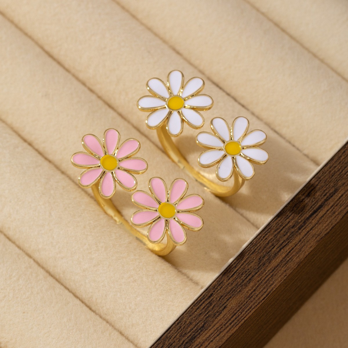 sweet style colorful oil necklace little daisy open ring simple creative mori style adjustable petal index finger ring for women