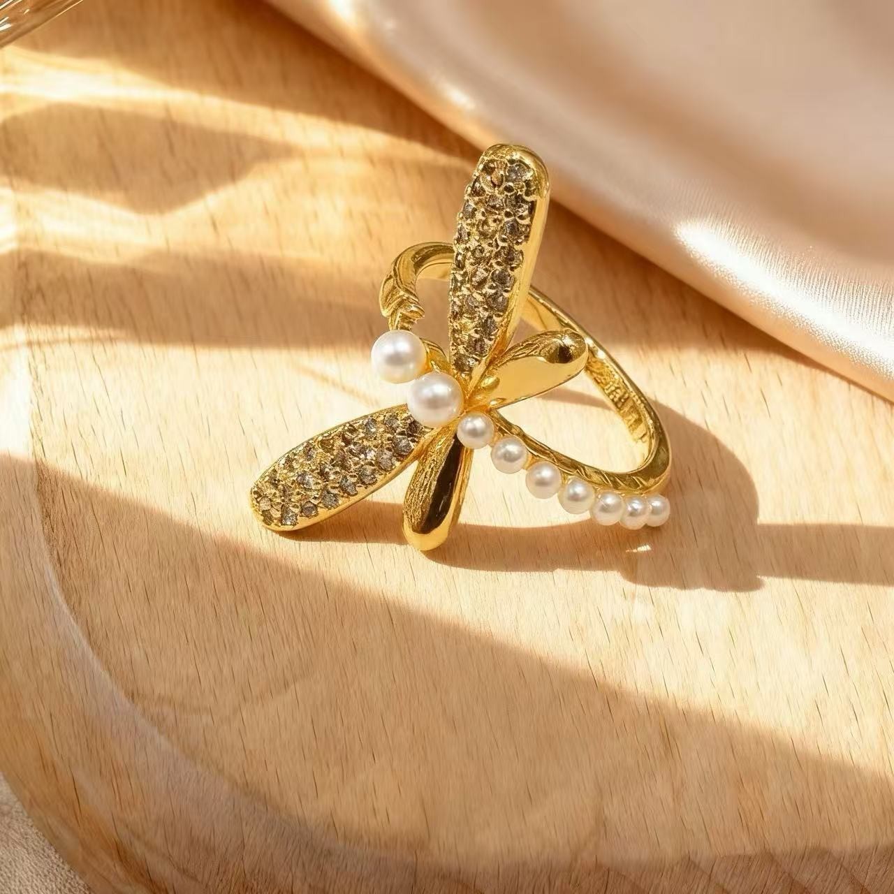 european and american entry lux temperament dragonfly open ring fashion high sense creative micro inlaid zircon pearl adjustable ring
