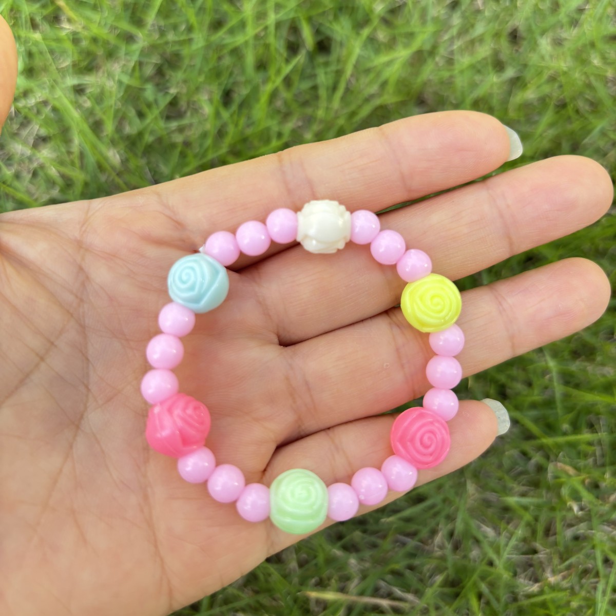 rose plus round beads, random combination of rose colors