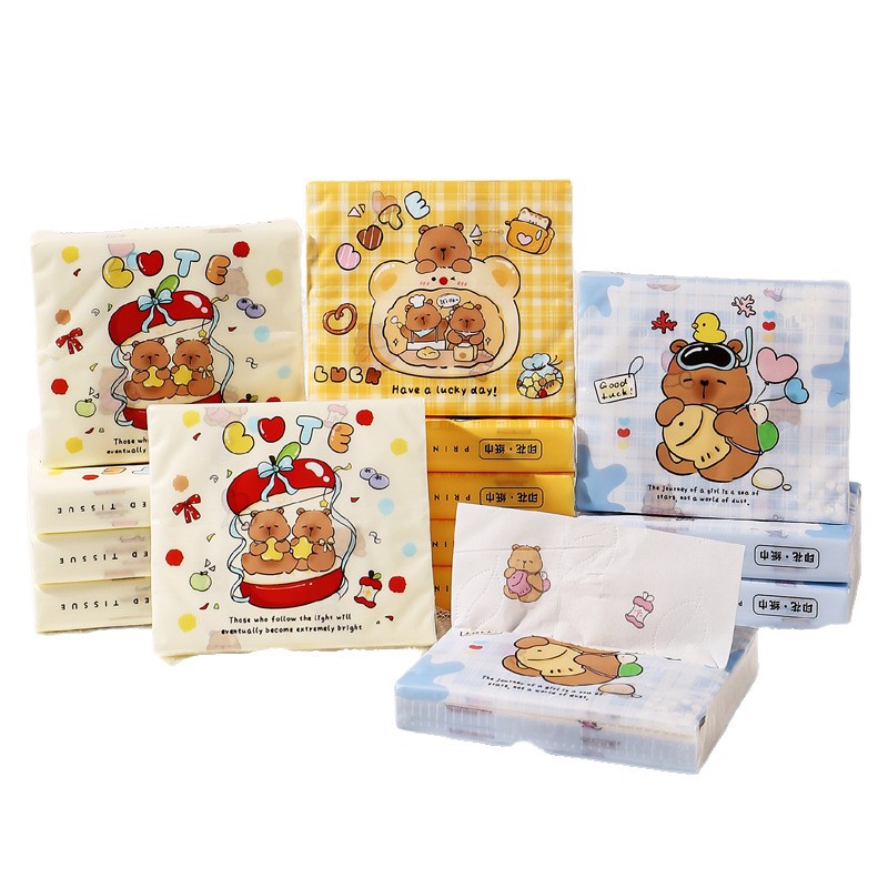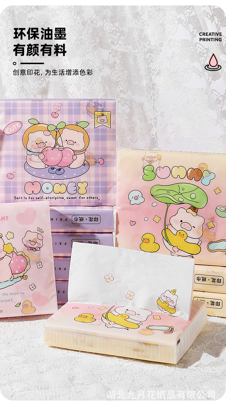 cute cartoon pouch tissue native wood pulp flexible superior portable printing paper extraction student children facial tissue