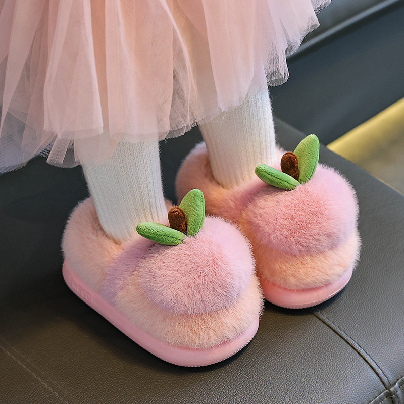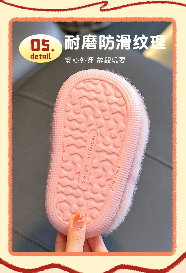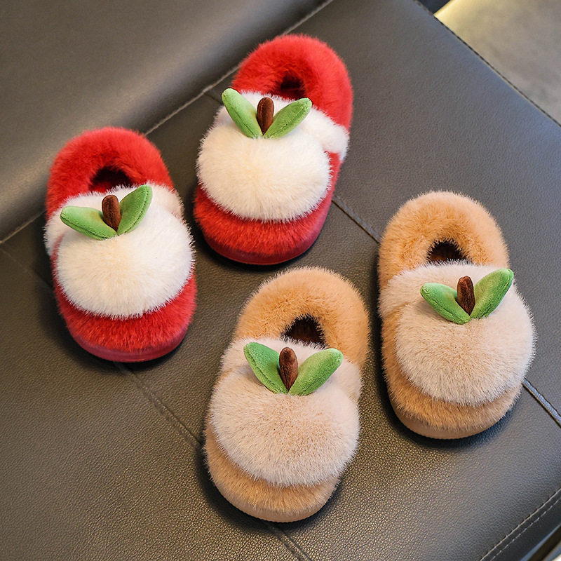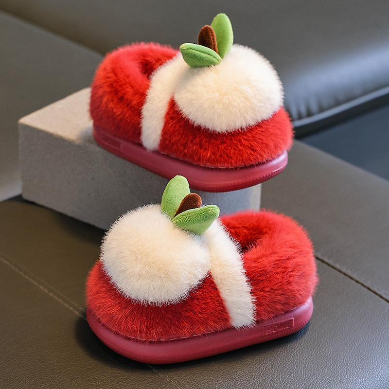 children's cotton slippers winter girls' boys' plush baby cotton shoes anti-slip heel slippers cotton slippers soft bottom