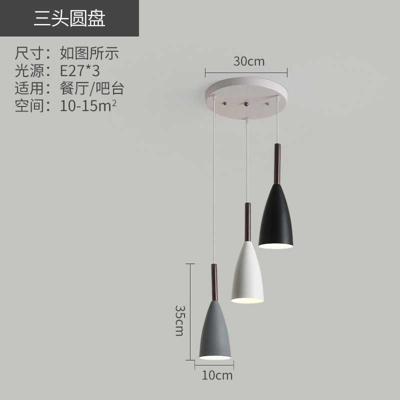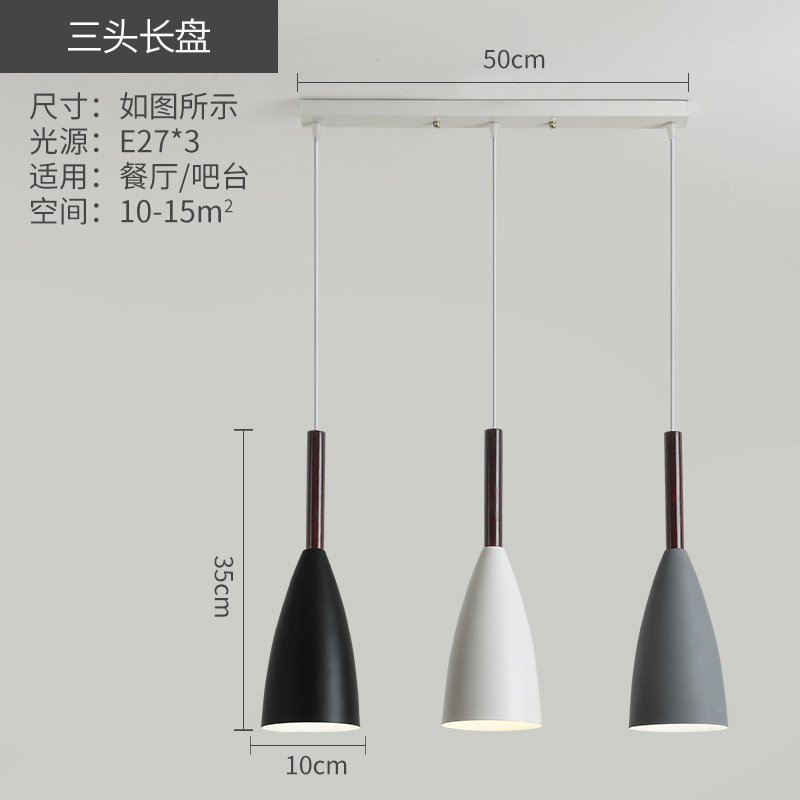 three-head post-modern gray black and white iron wooden pole e27 zhongshan home decoration lighting cross-border wholesale bar chandelier