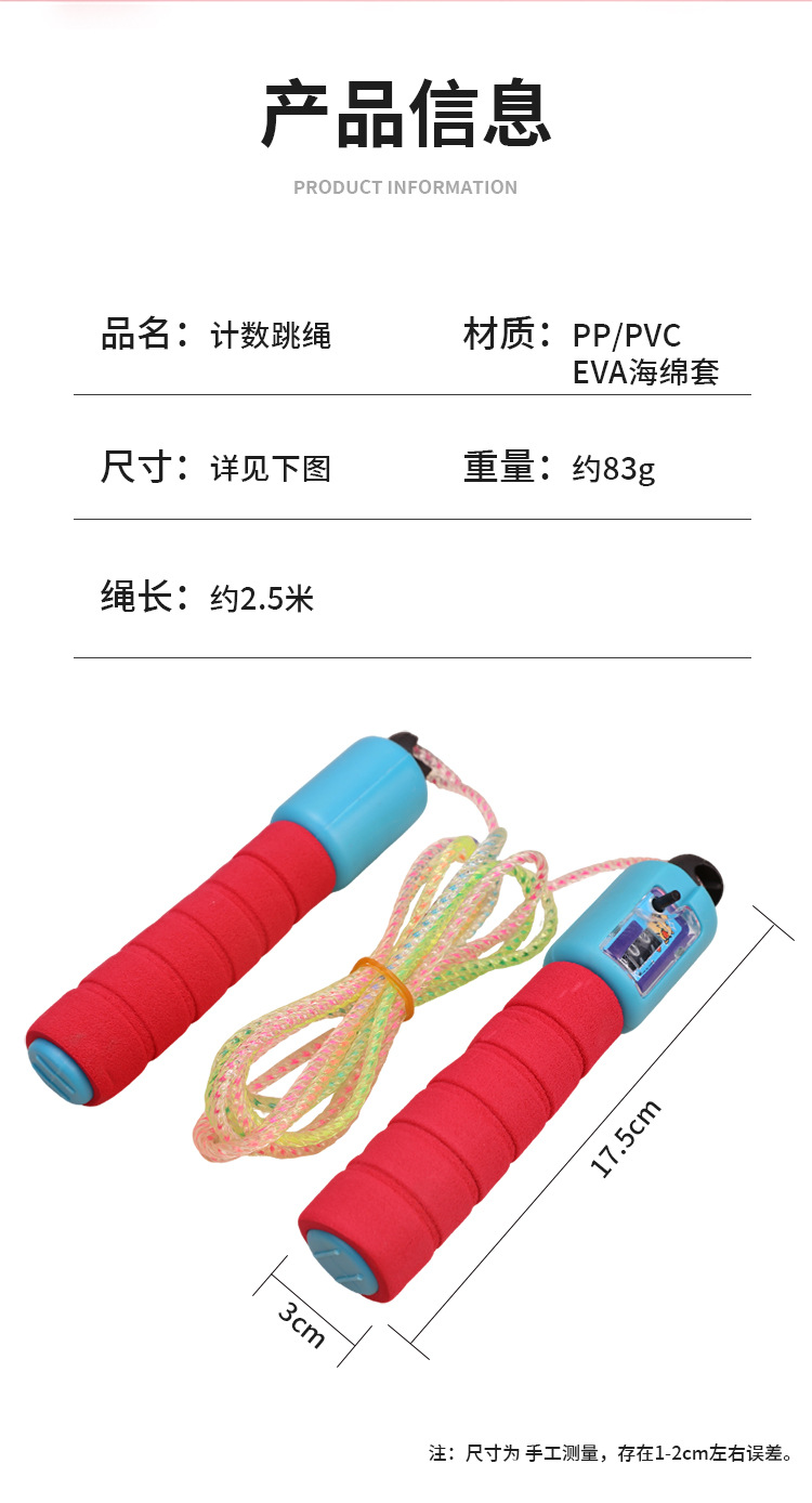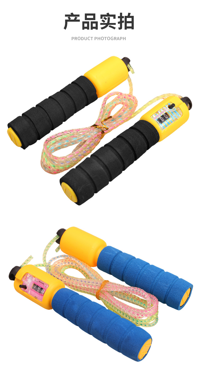 foam rubber grip crystal skipping rope with counter (blue)