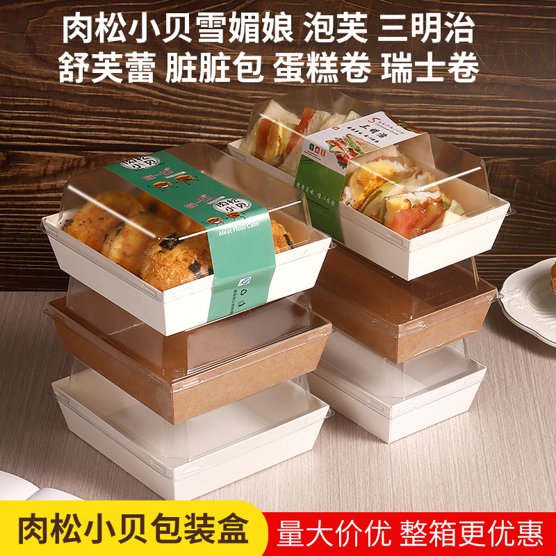 sandwich box zizheng rectangular cellophane paper plastic box dessert dried meat floss small shell packing box cake egg roll to-go box