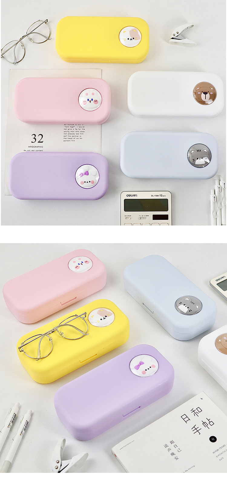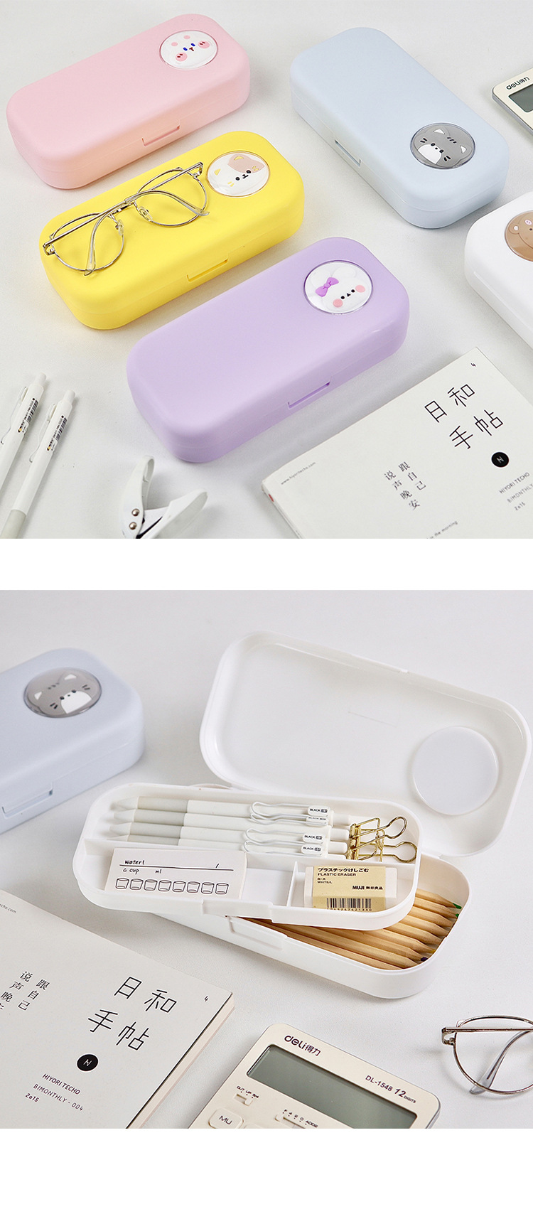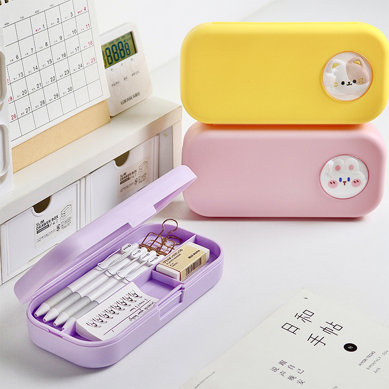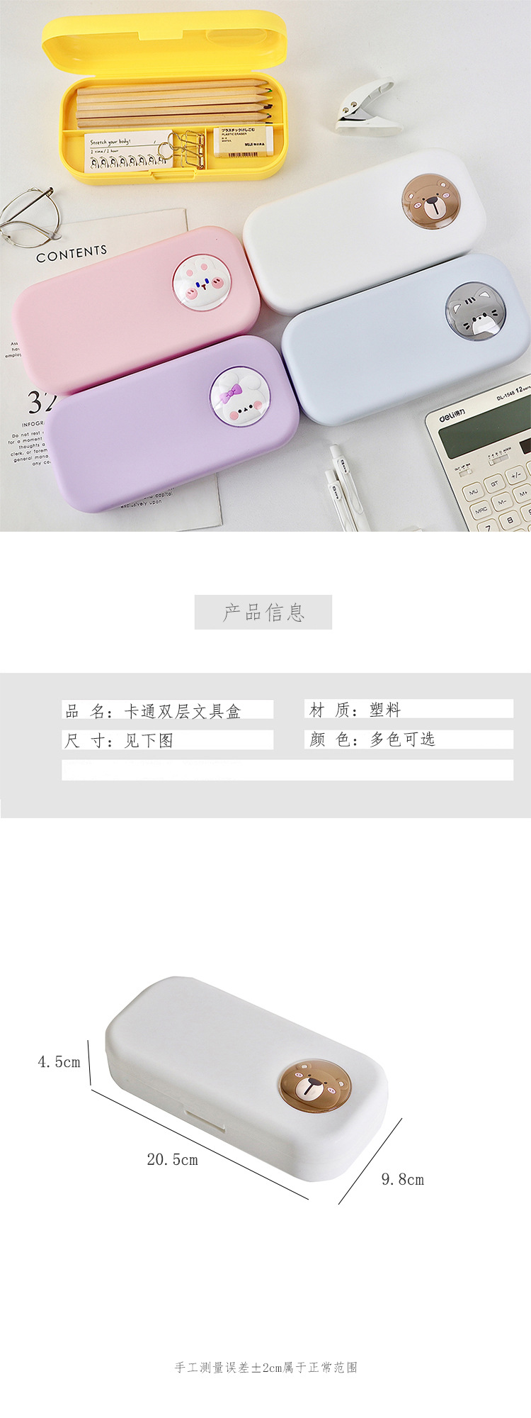 cartoon double-layer white pencil case (120 per box)