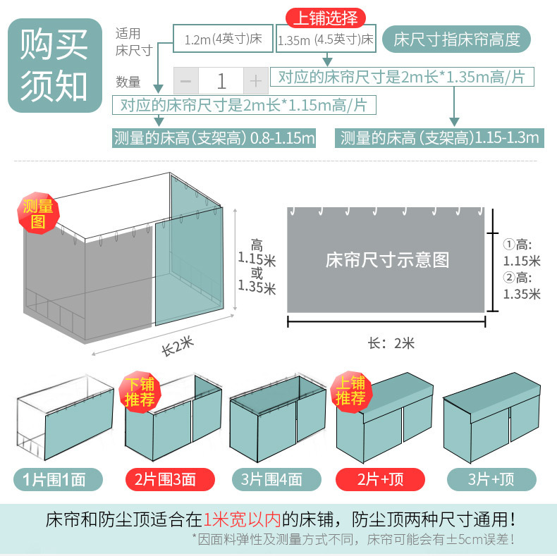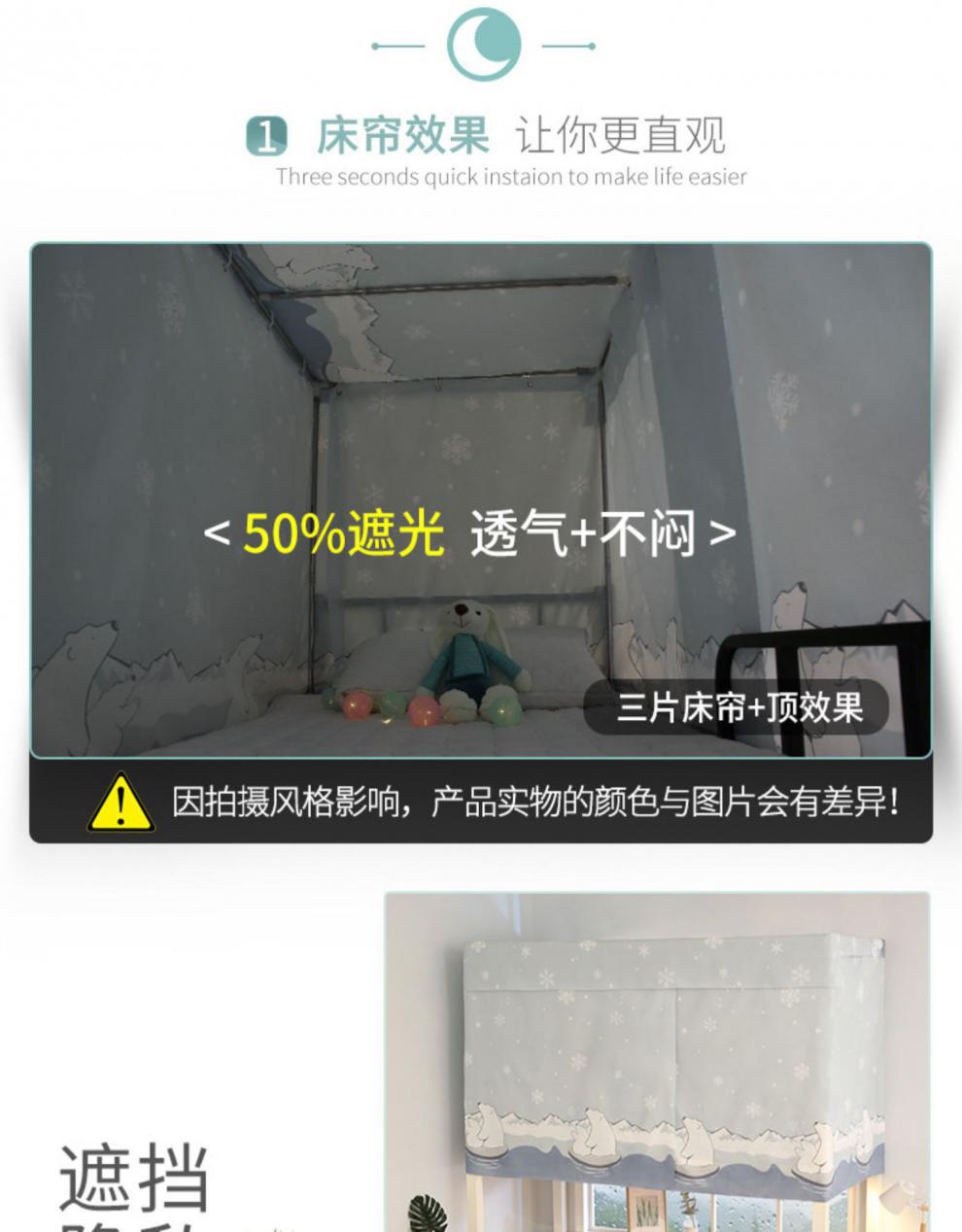 大学生宿舍蚊帐床帘一体式上铺下铺遮光布女寝室两用窗帘隐私帘子ak9.8