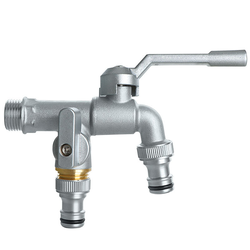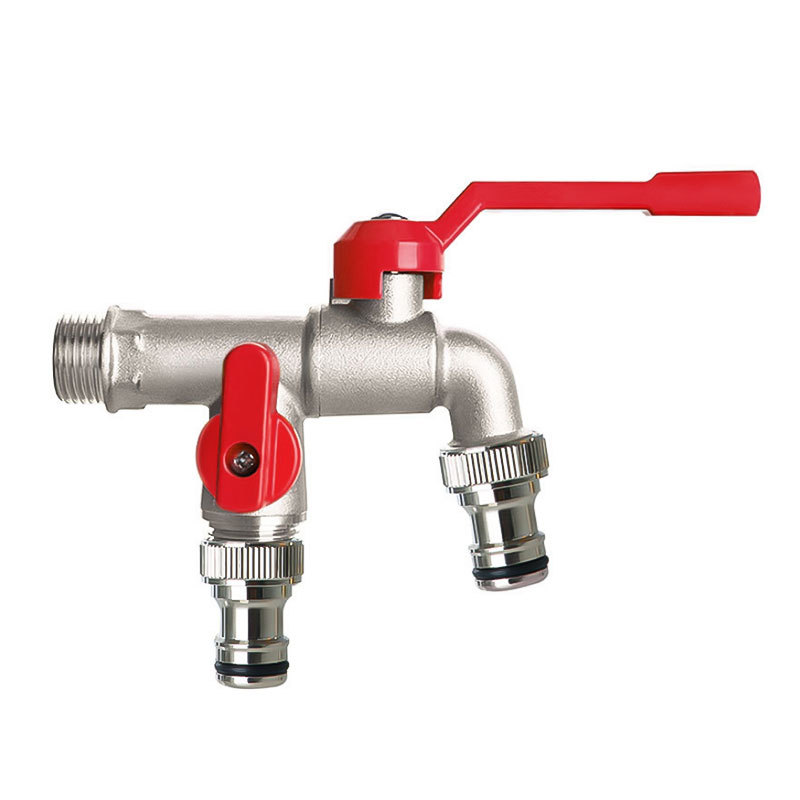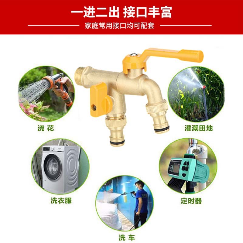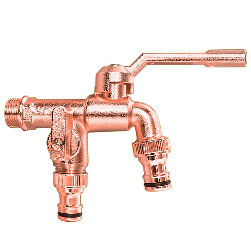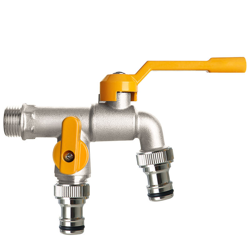 All-copper nickel-plated faucet for home washing machines with 4-inch dual spout, copper ball and copper rod, anti-freezing long handle garden, cold and hot water spout, kitchen pure copper, single cold home filter, valve core kitchen filter, one in and two out, dual control, quick opening dual water spout, water spout in copper color, garden outdoor anti-freezing