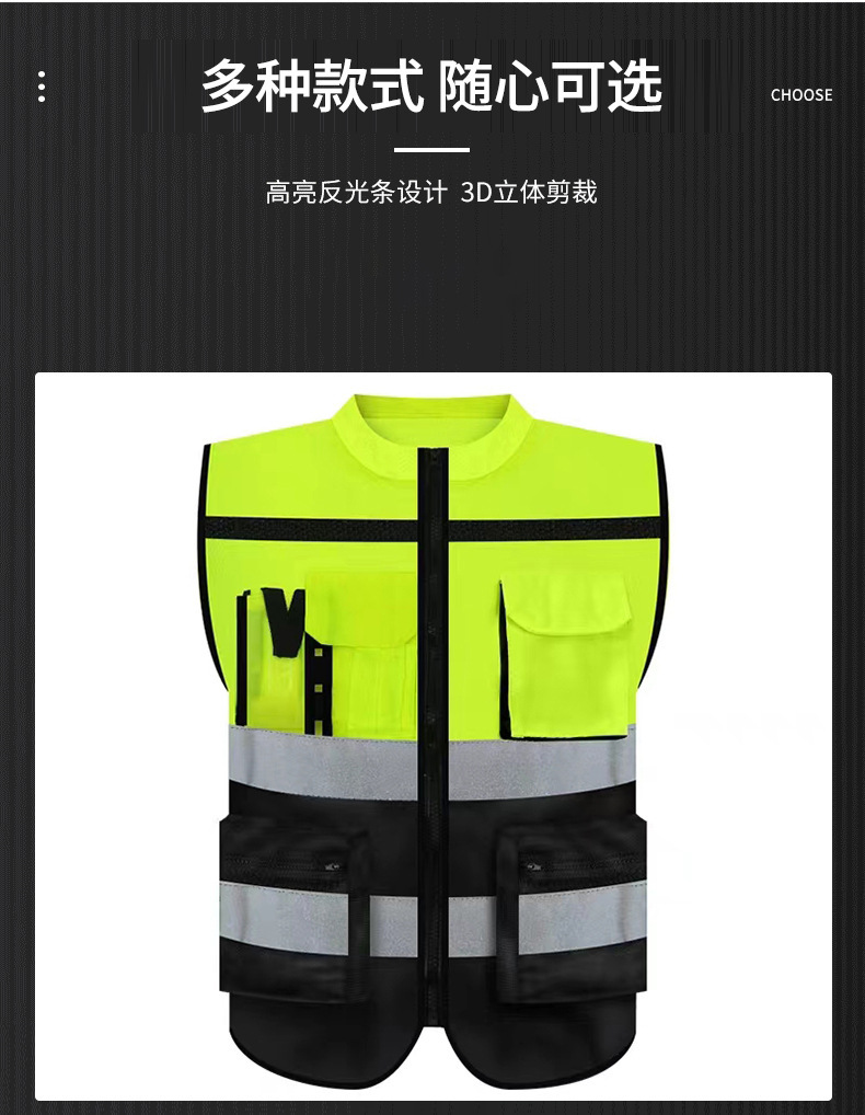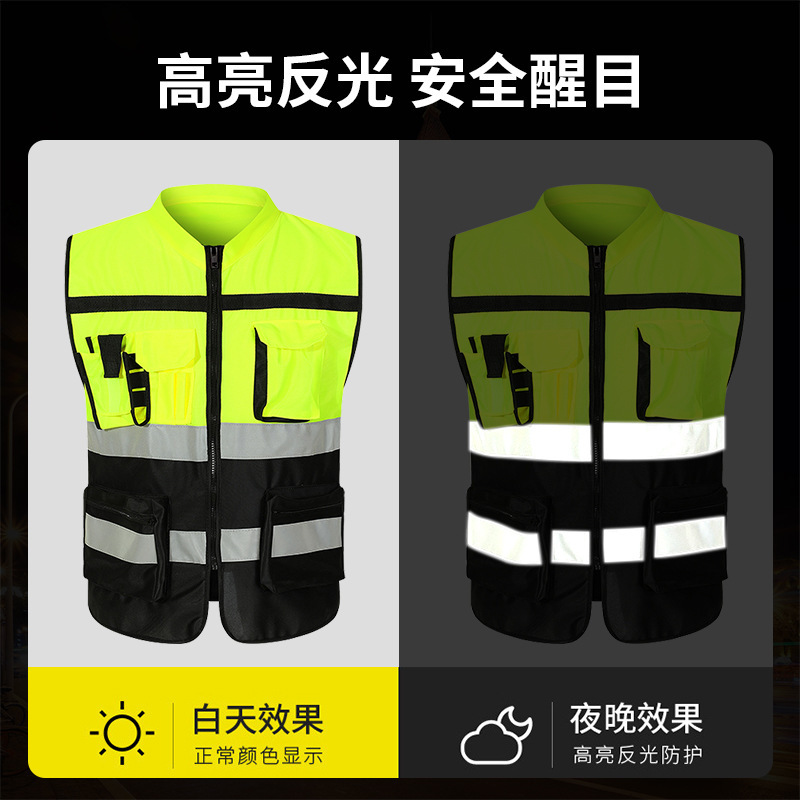 l; fluorescent green and black reflective vest