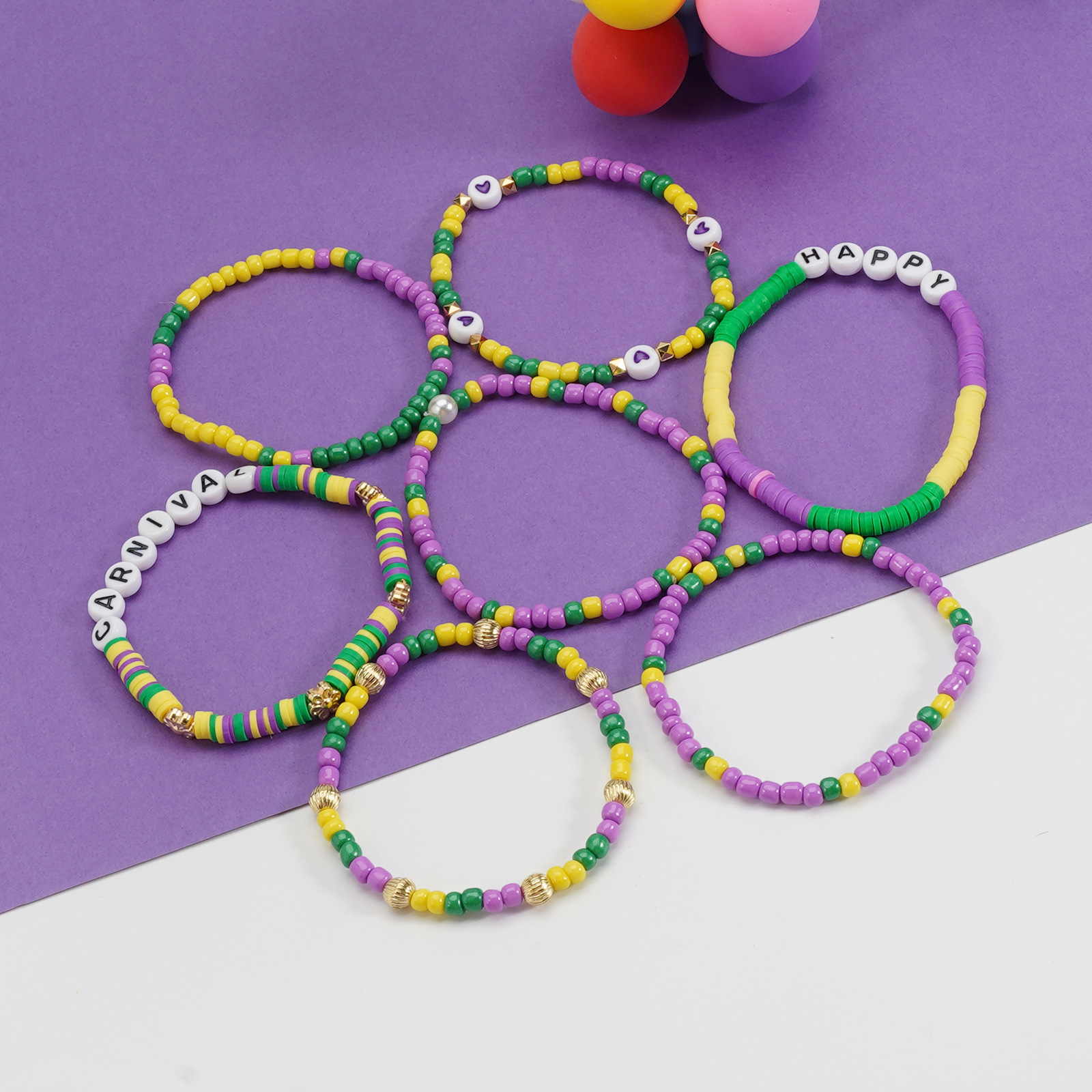 Brazilian Carnival Bracelet with Heart Mardi Gras Carnival Soft Clay Beaded Bracelet Party Bracelet