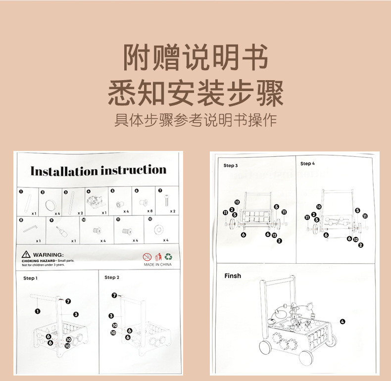 Multifunctional Beading Learning Walker, product size 2.6kg/33.5*26*15.8, color box, outer box size 6 pieces/48.9*35*53.8, total weight of the case 16kg