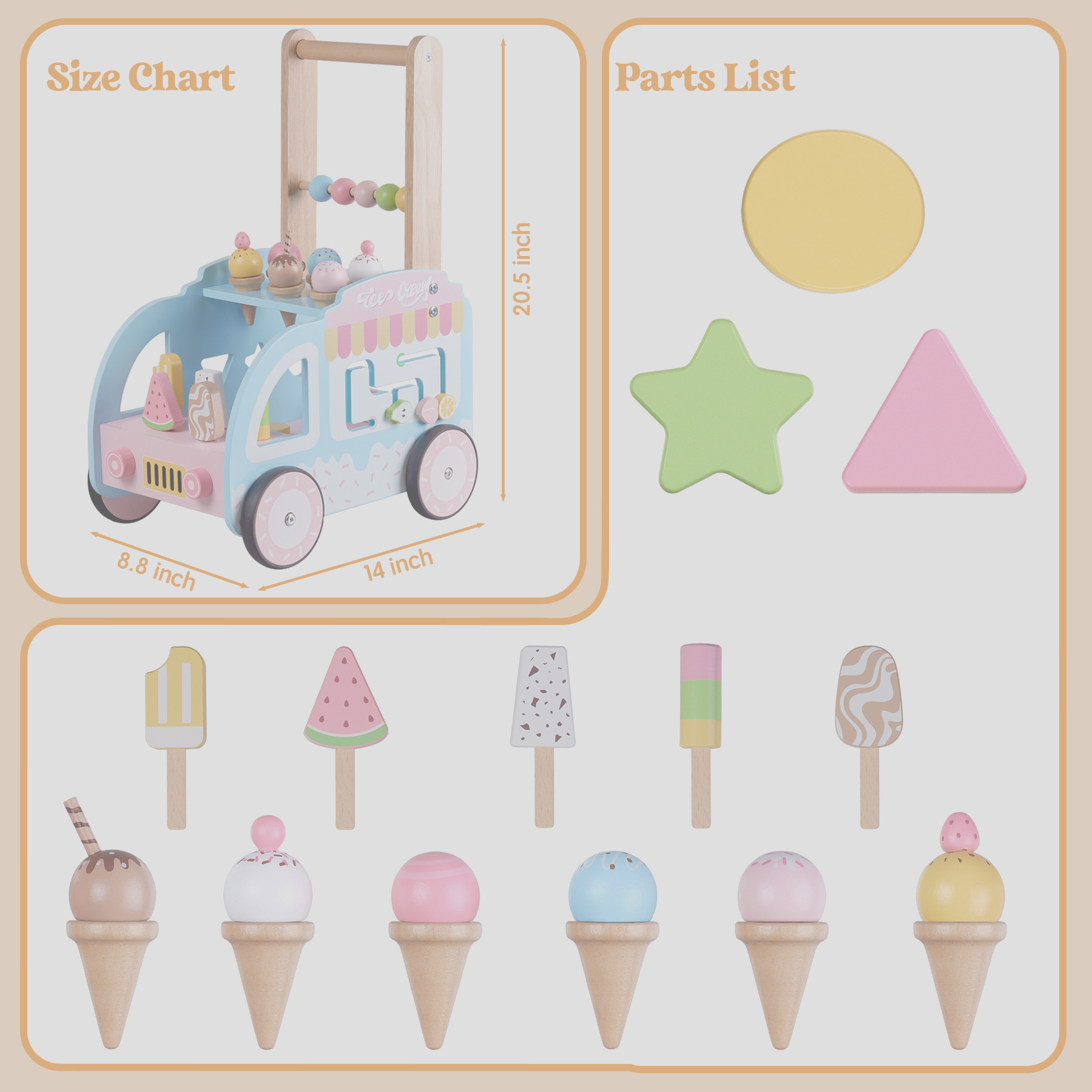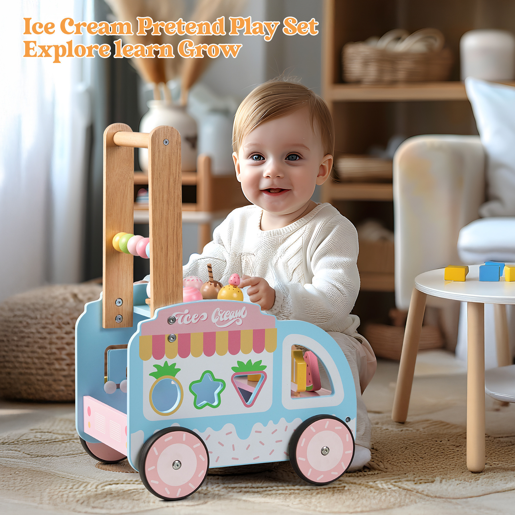 Pink and blue ice cream walker, color box, product size: 3.5kg/38*26*13cm, packing information: 40*27.5*55cm/4 sets, gross weight: 14kg