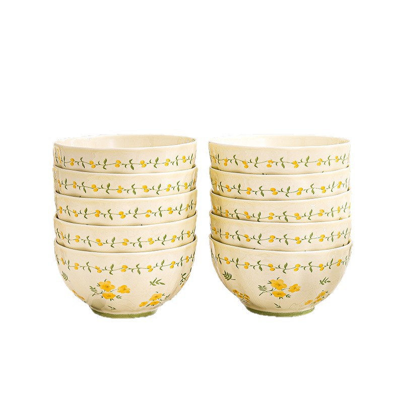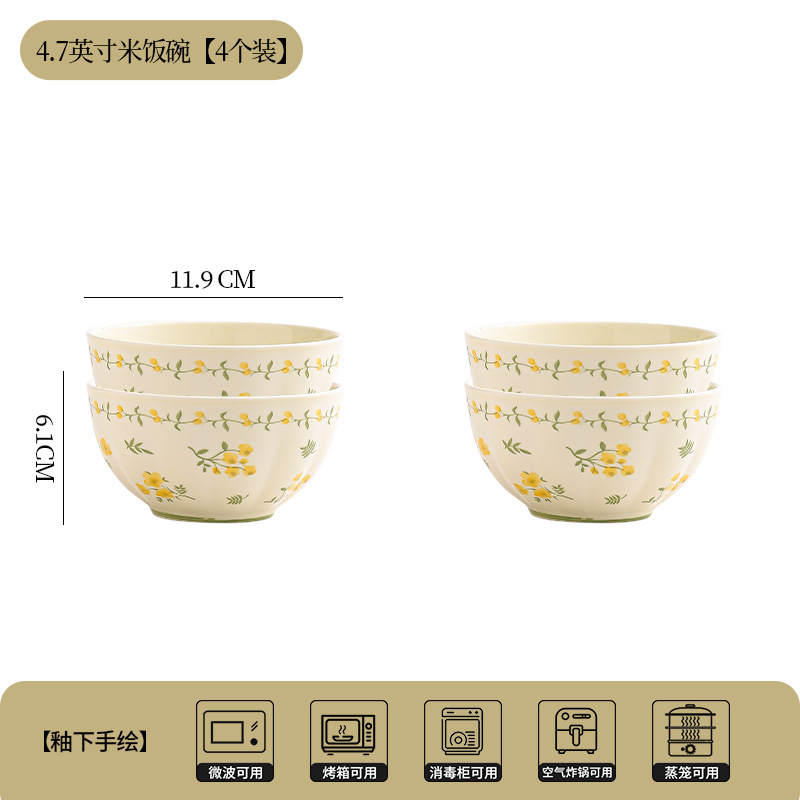 yellow glaze spring cute-4.5 inch rice bowl x1