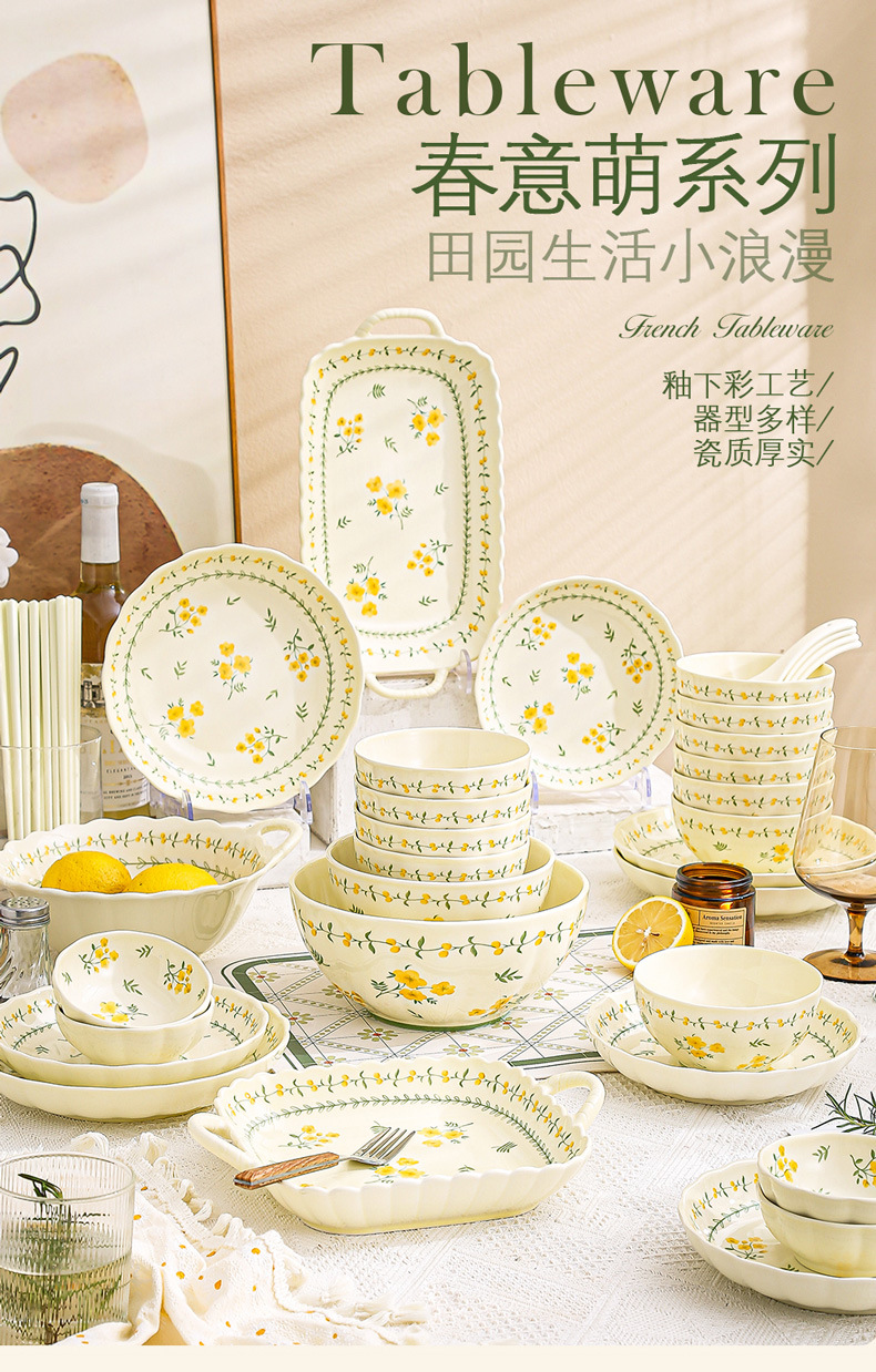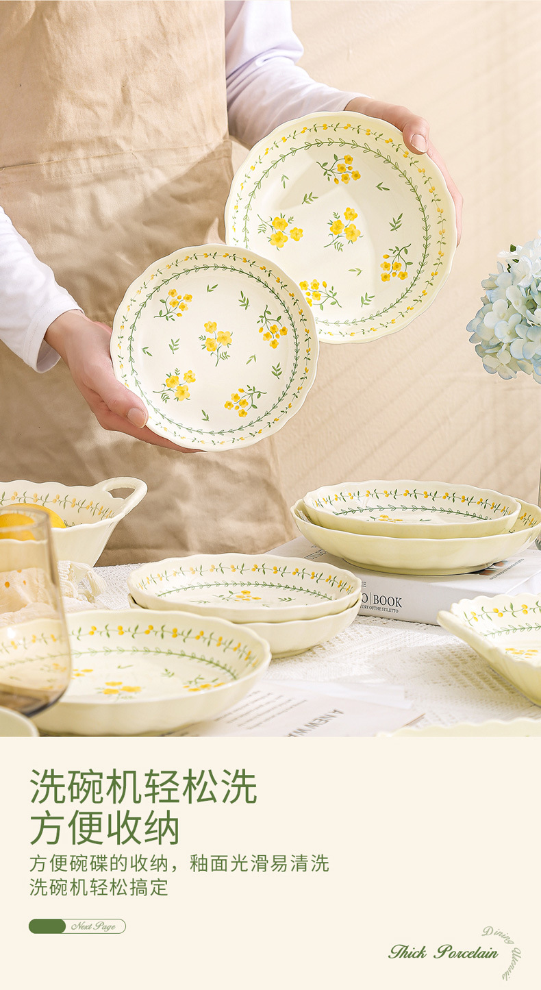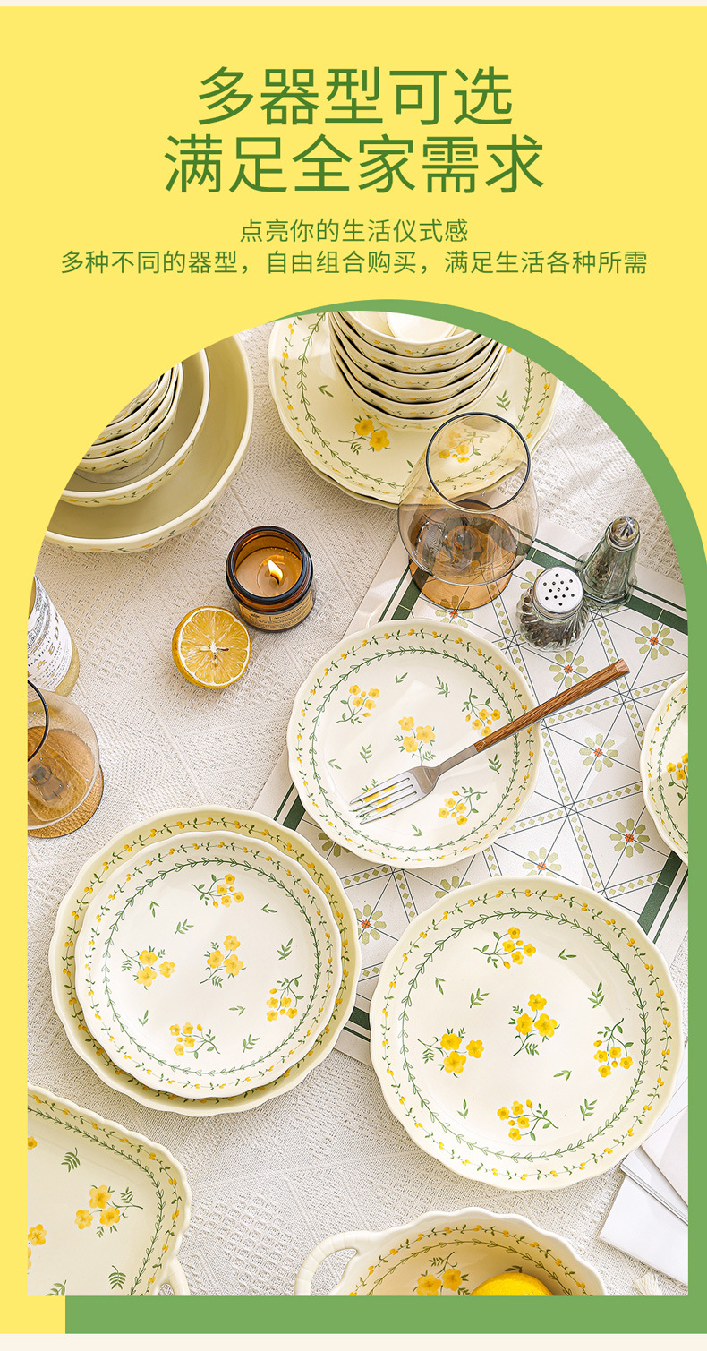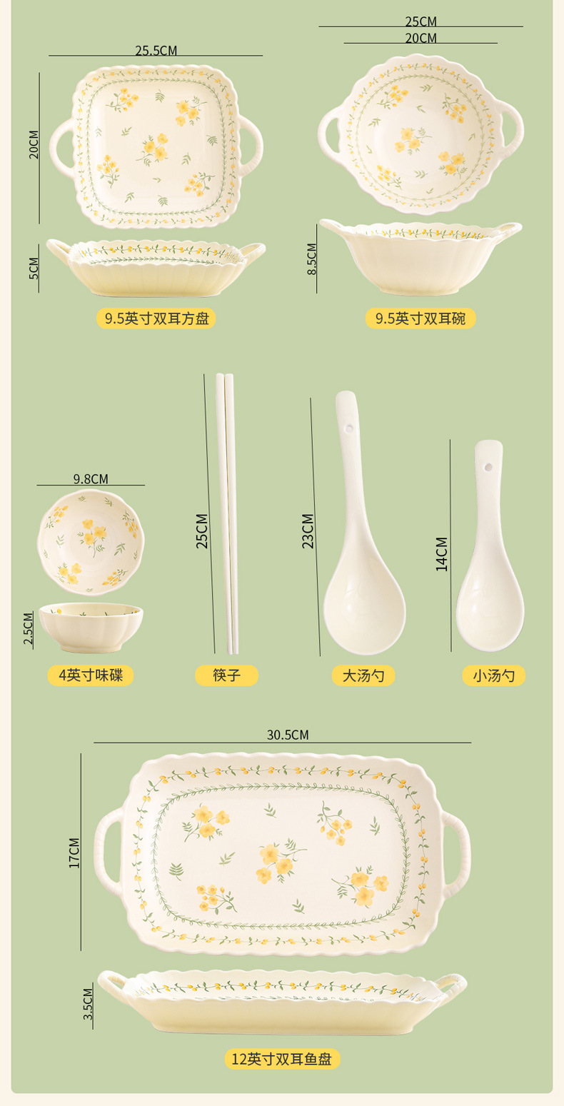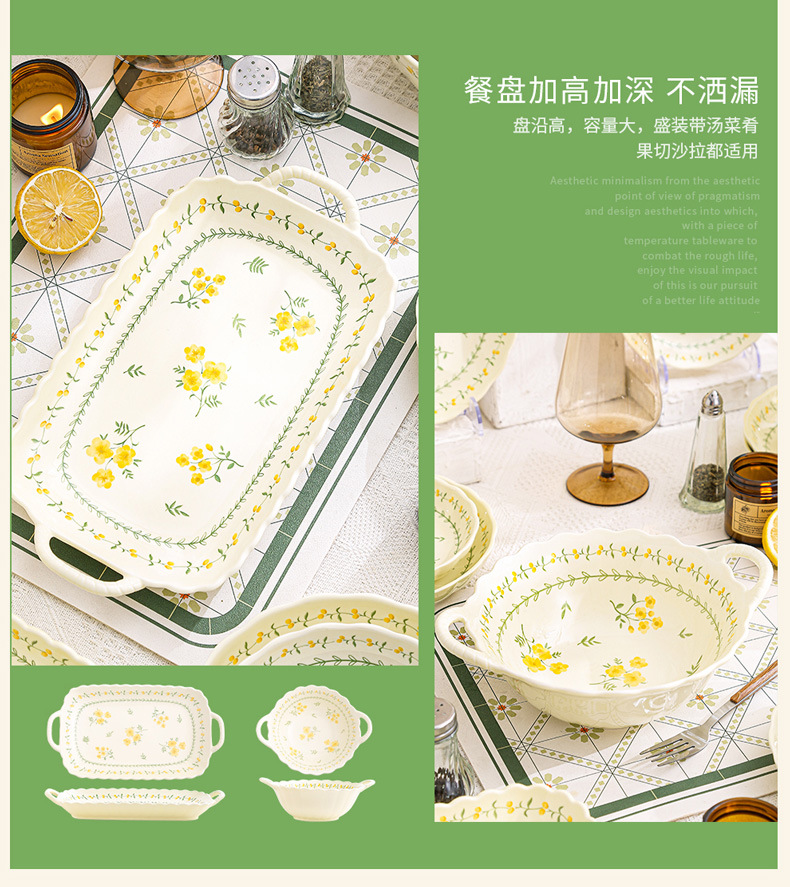 yellow glaze spring cute-9.2-inch binaural square plate x1