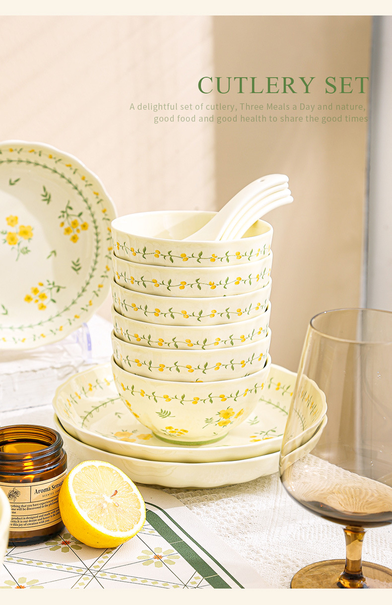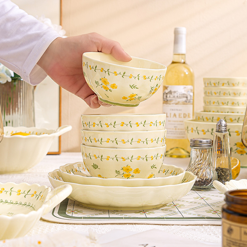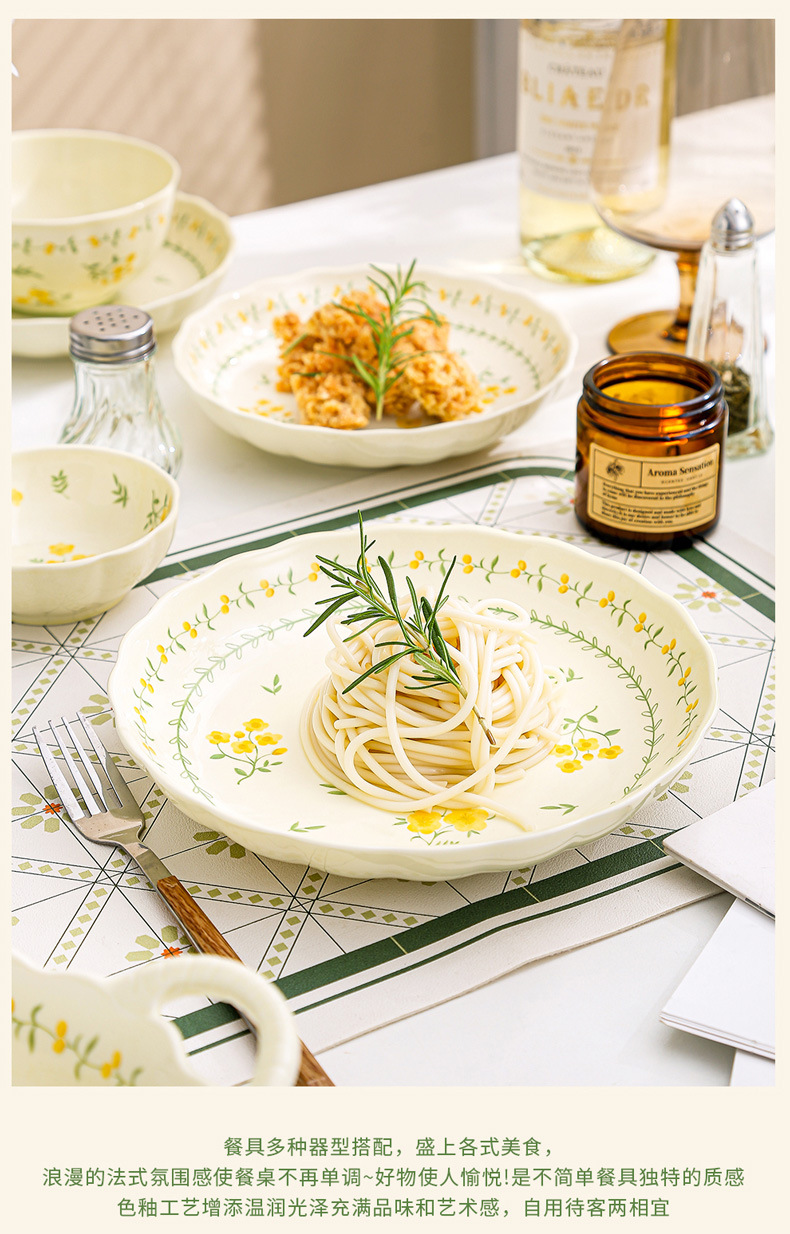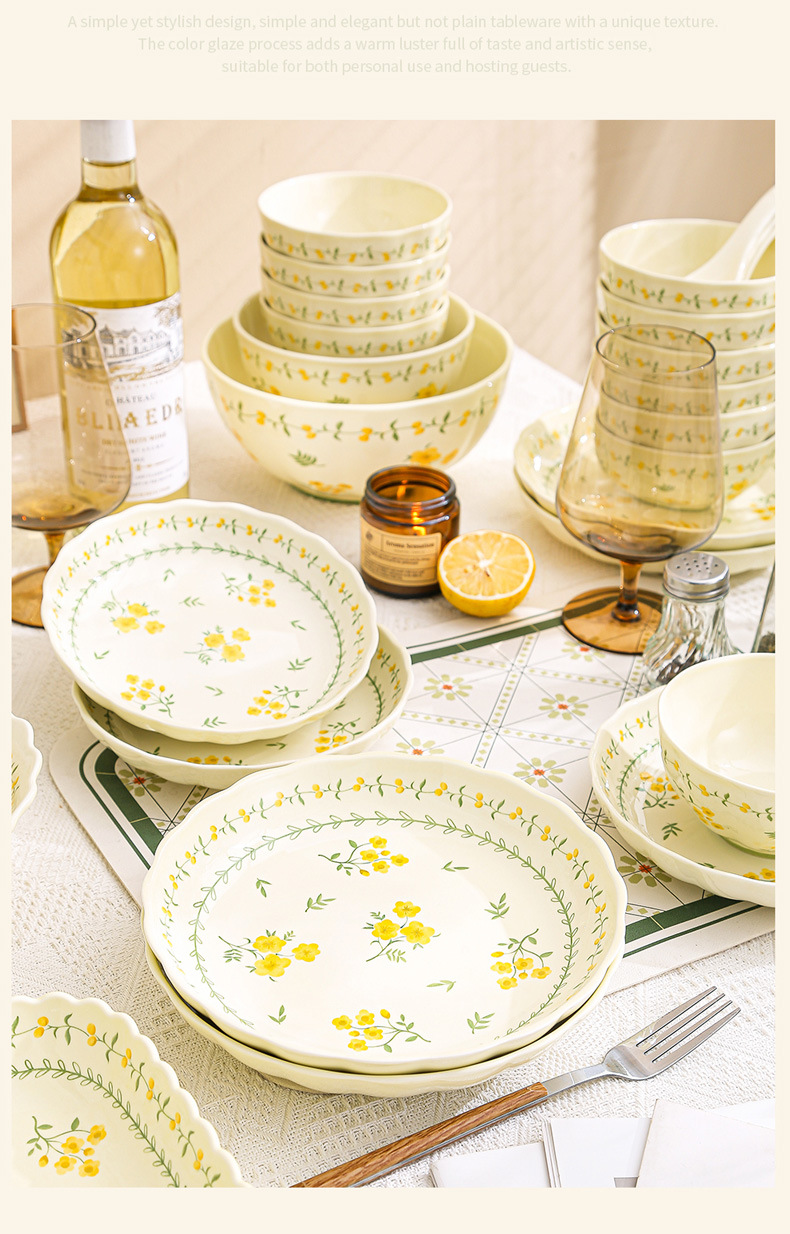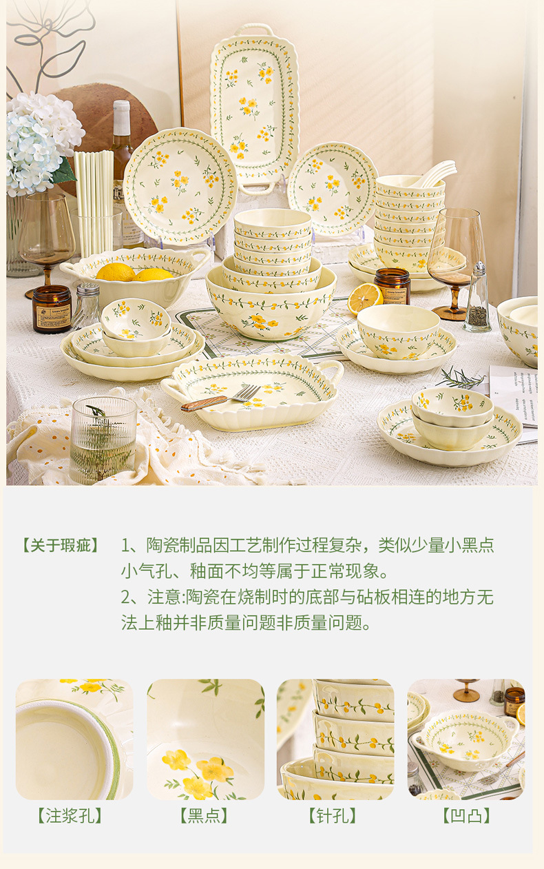 yellow glaze spring cute-9.2-inch binaural square plate x1