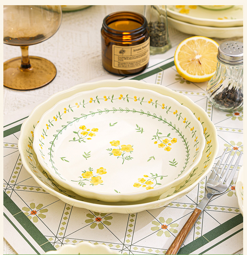 yellow glaze spring cute-7-inch lotus plate x1