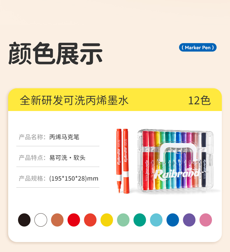 [12 colors acrylic marker pen] upgrade easy-to-wash color rod high-looking
