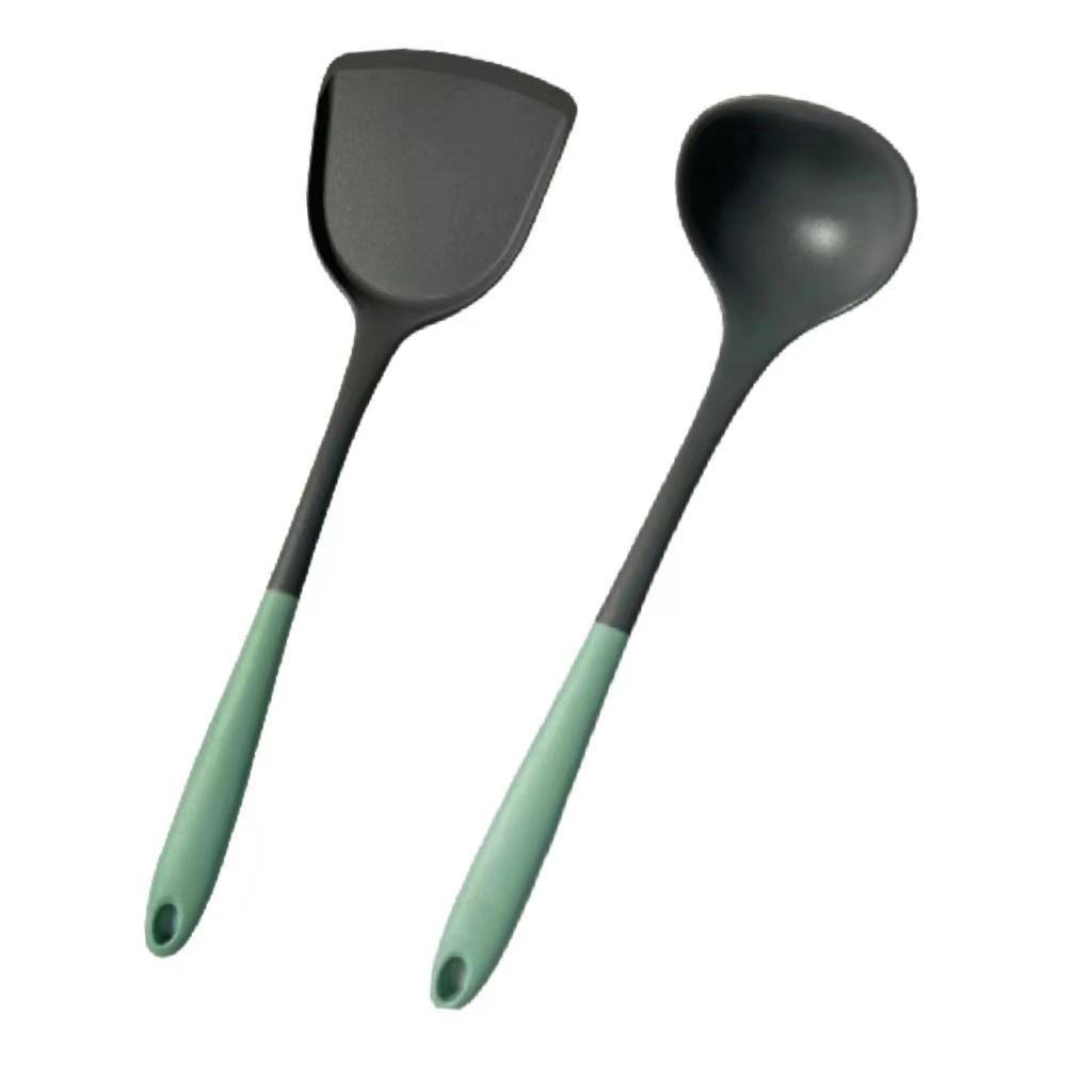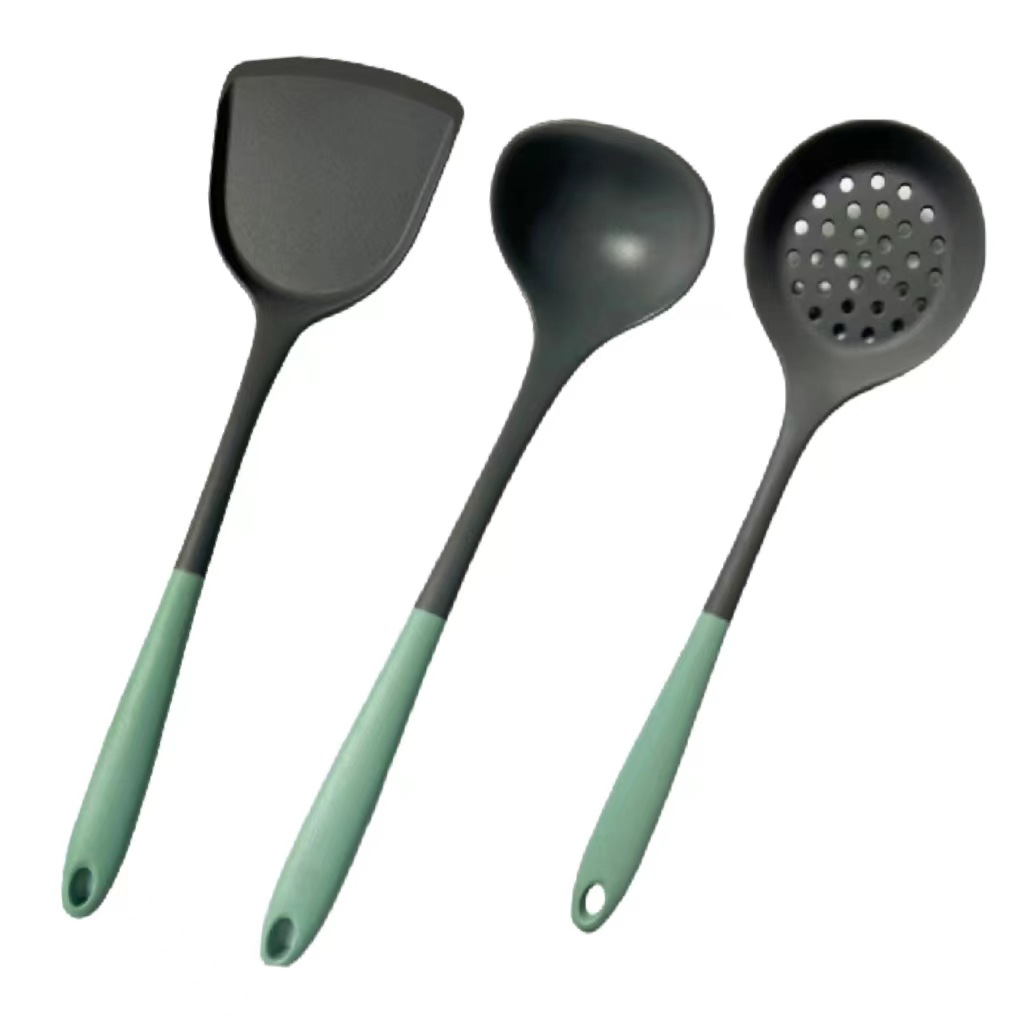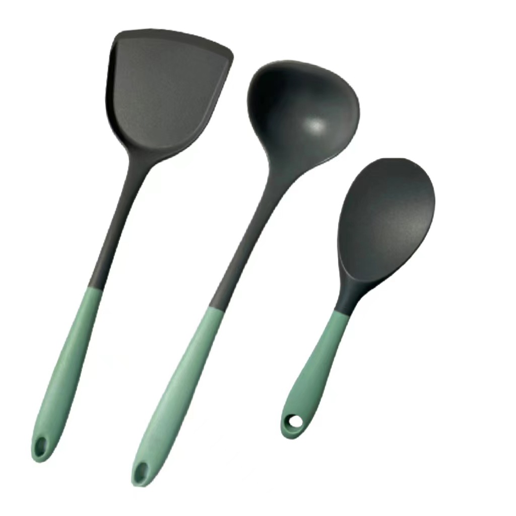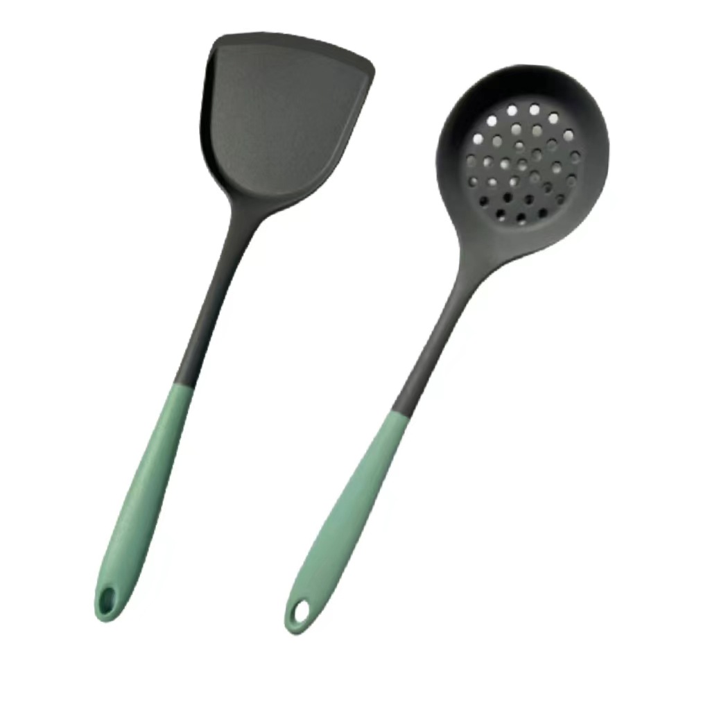 [two-color gray green] silicone (spatula + spoon + colander)