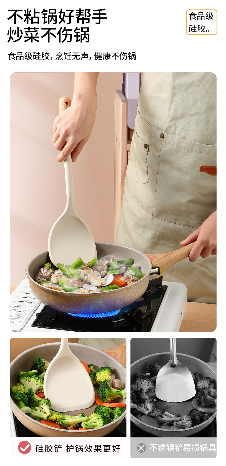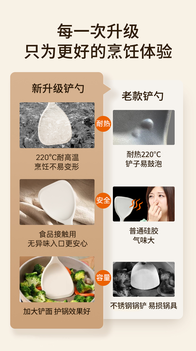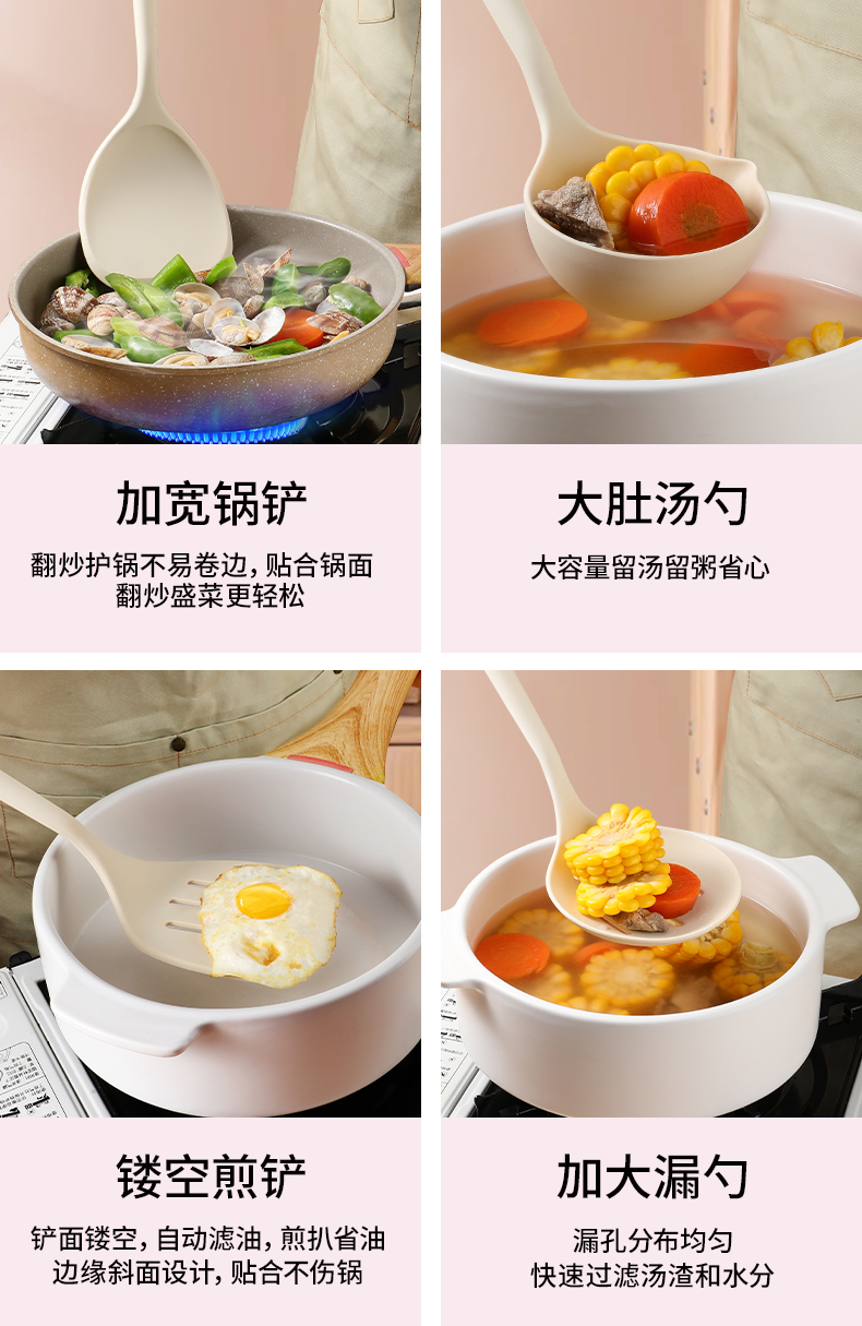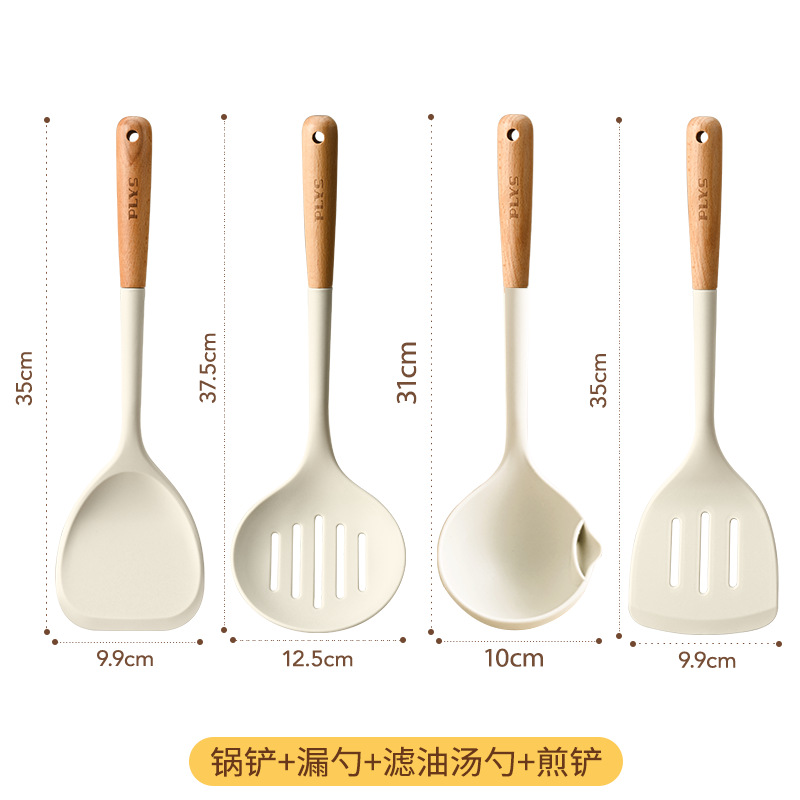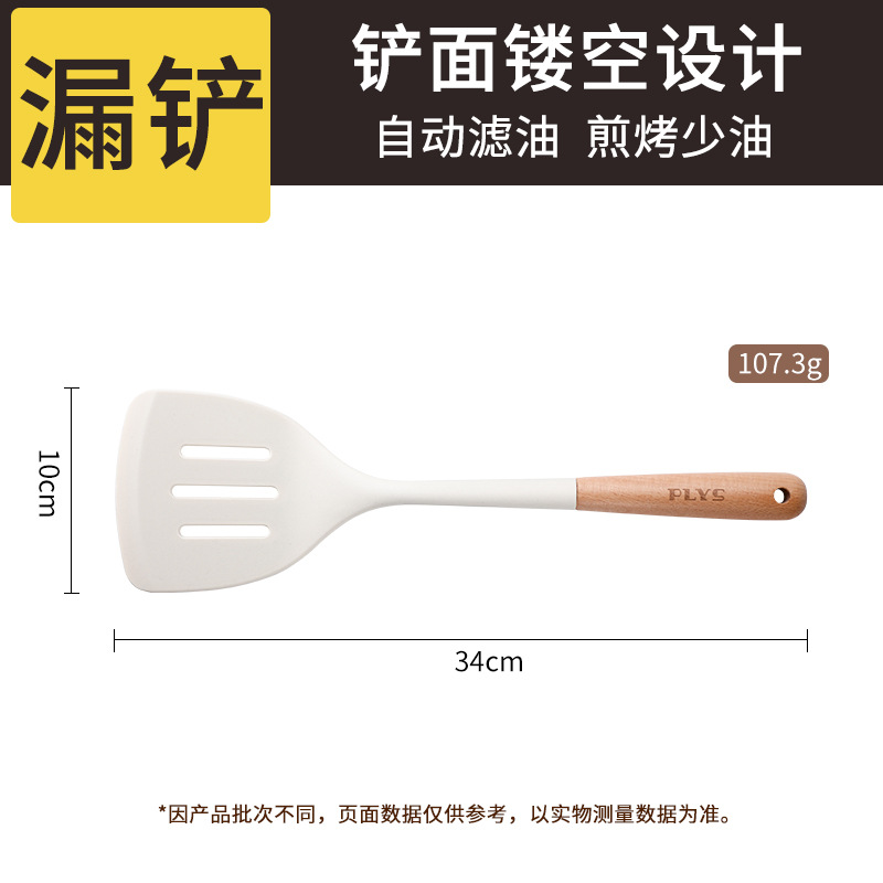 milk white silicone spatula with wooden handle (spatula + colander + spatula + oil filter spoon)
