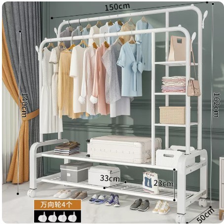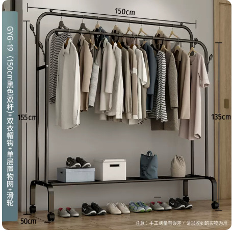 double-rod double-layer clothes hanger with black universal wheel