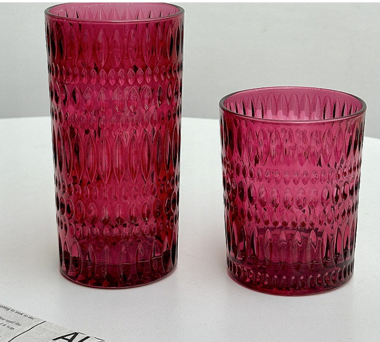 ins style rose red embossed glass high-end entry lux household water cup juice milk beer wine glass whiskey glass