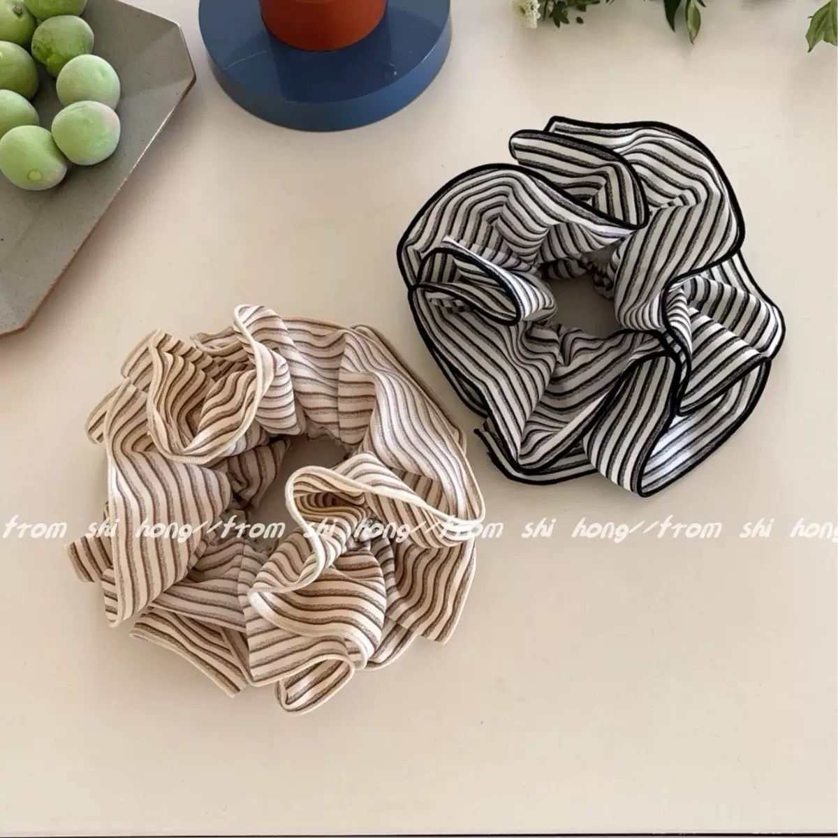 korean style vintage stripe fabric large intestine hair band female high sense ponytail hair string back head hairtie temperament headdress flower