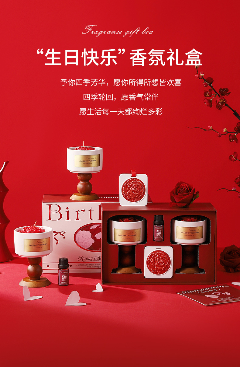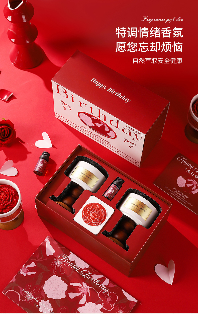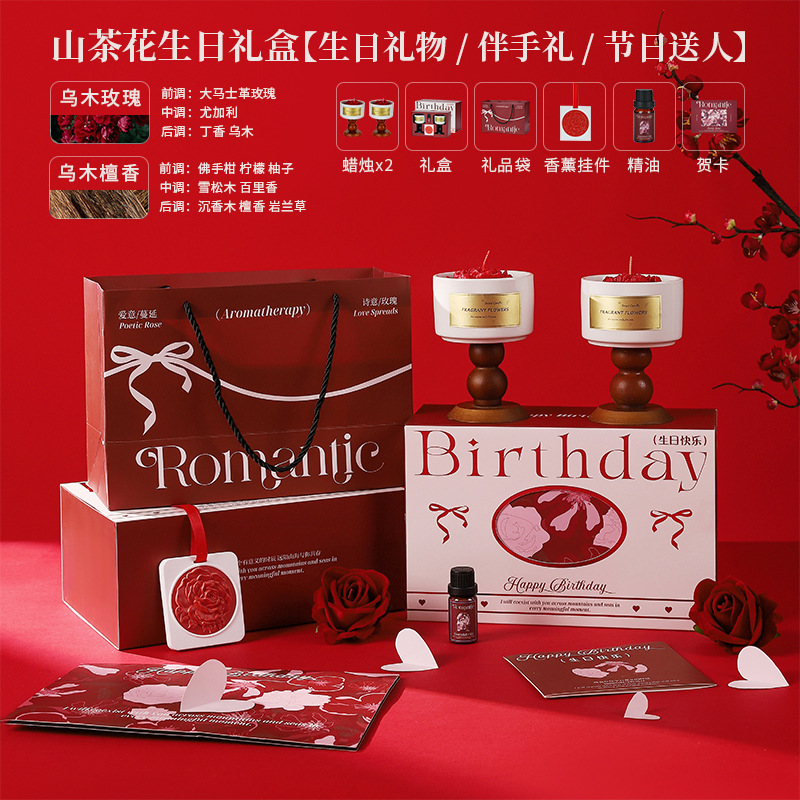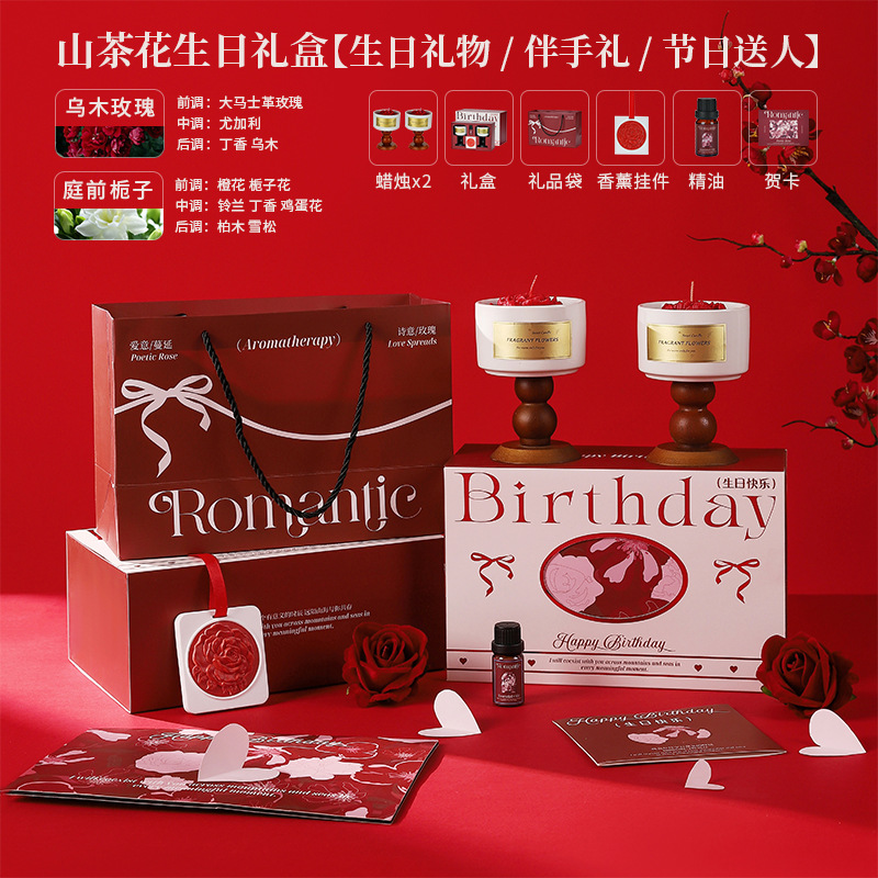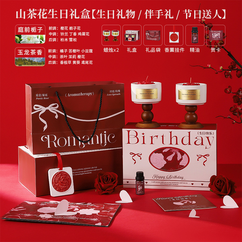 red camellia birthday gift box [gardenia + tea fragrance] contains gift bag jasmine scented green tea
