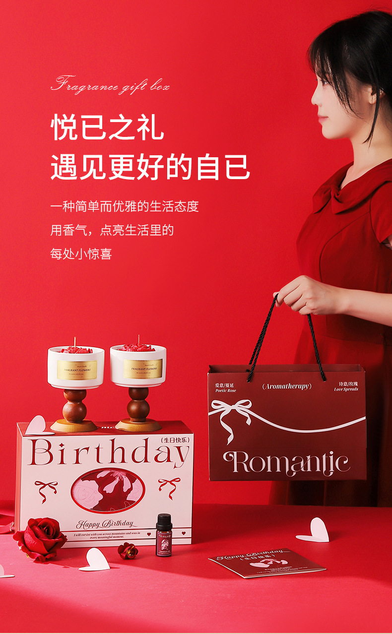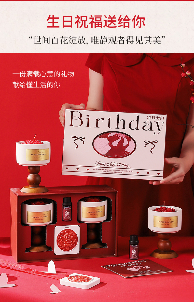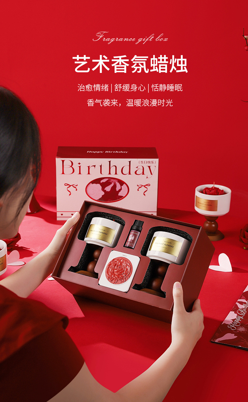 red camellia birthday gift box [gardenia + tea fragrance] contains gift bag jasmine scented green tea
