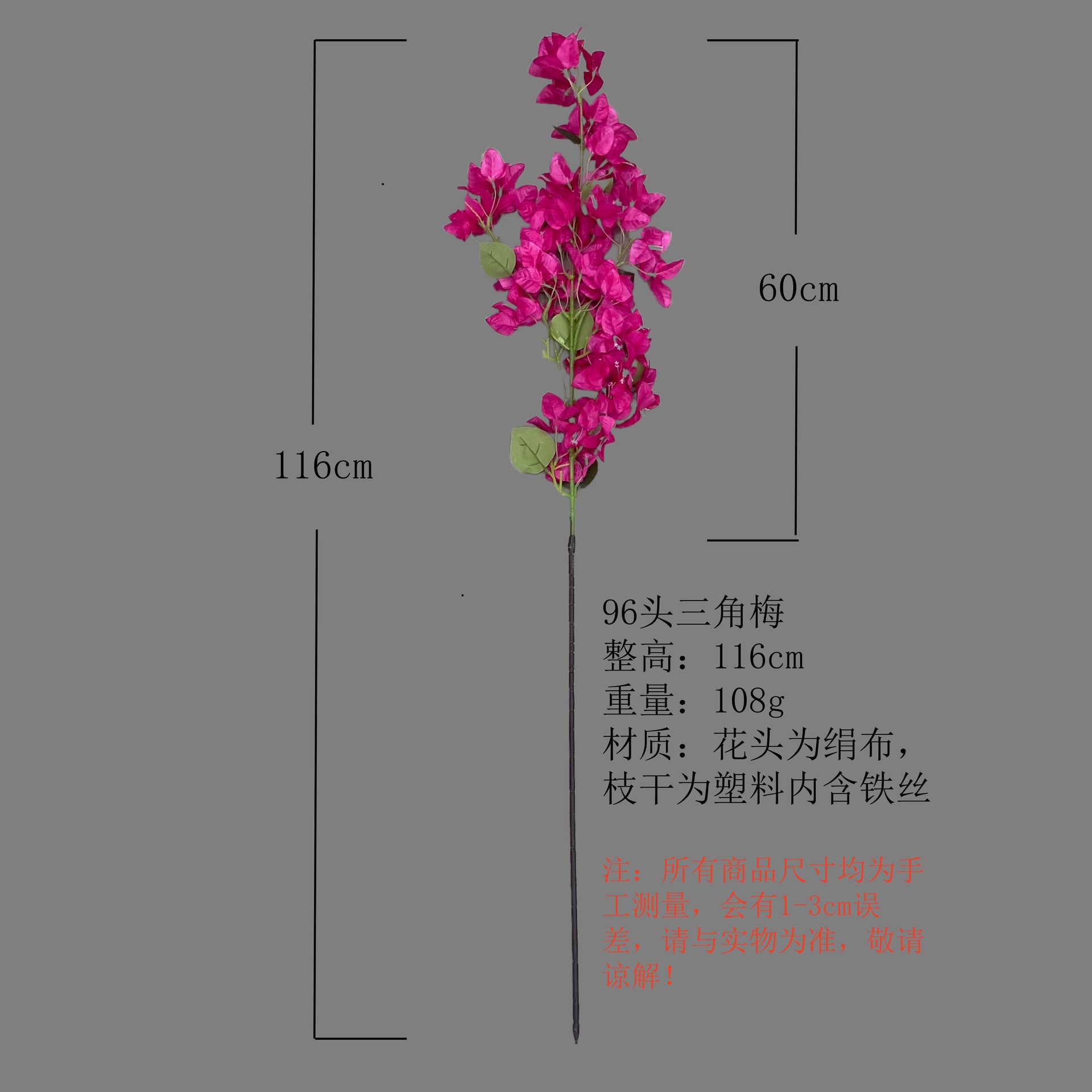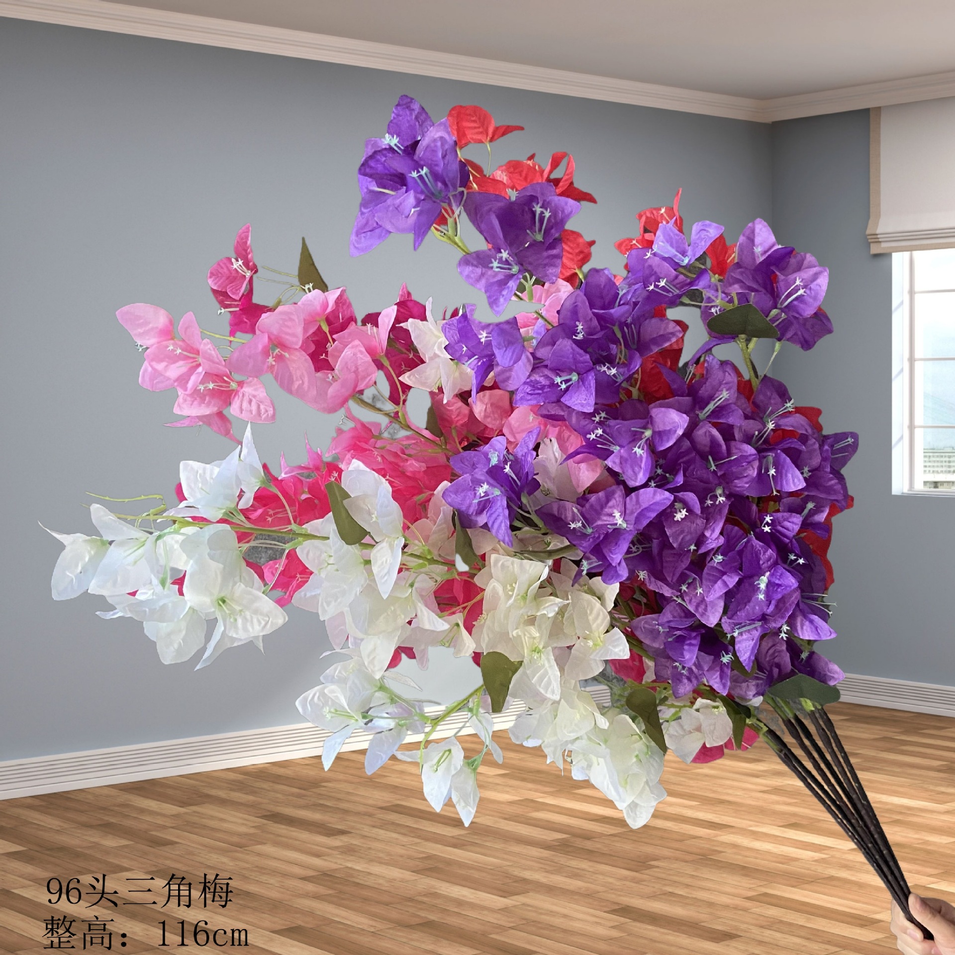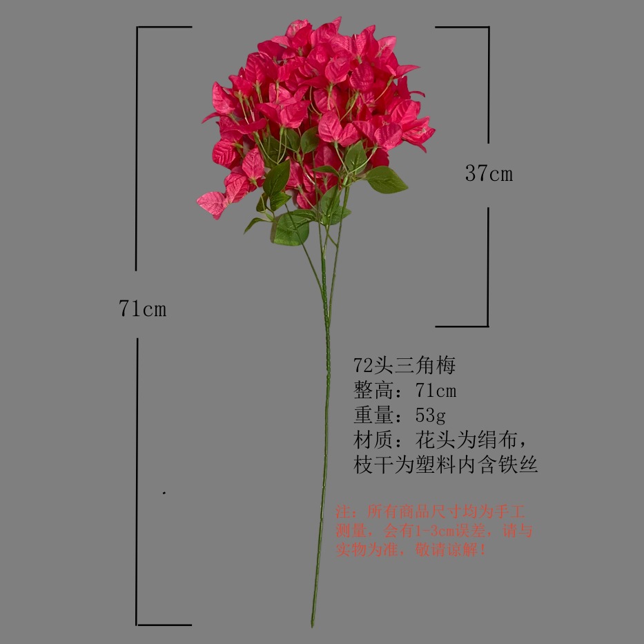 72 heads of bougainvillea are custom-made, no stock available, with a lead time. If there is a need, the boss can privately contact the customer service, and a sample can be sent.