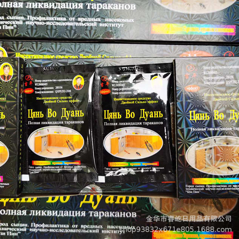 Jipin cockroach poison, available in 15g/box and 10g/box, a case contains 900 boxes, the case size is 80*38*44, about 22kg for 10g weight, about 25kg for 15g weight. Without the middle box, a case contains 2500 packages, the case size is 55*45*30.