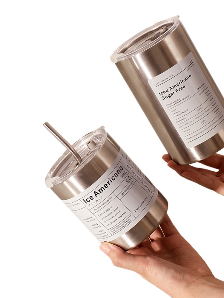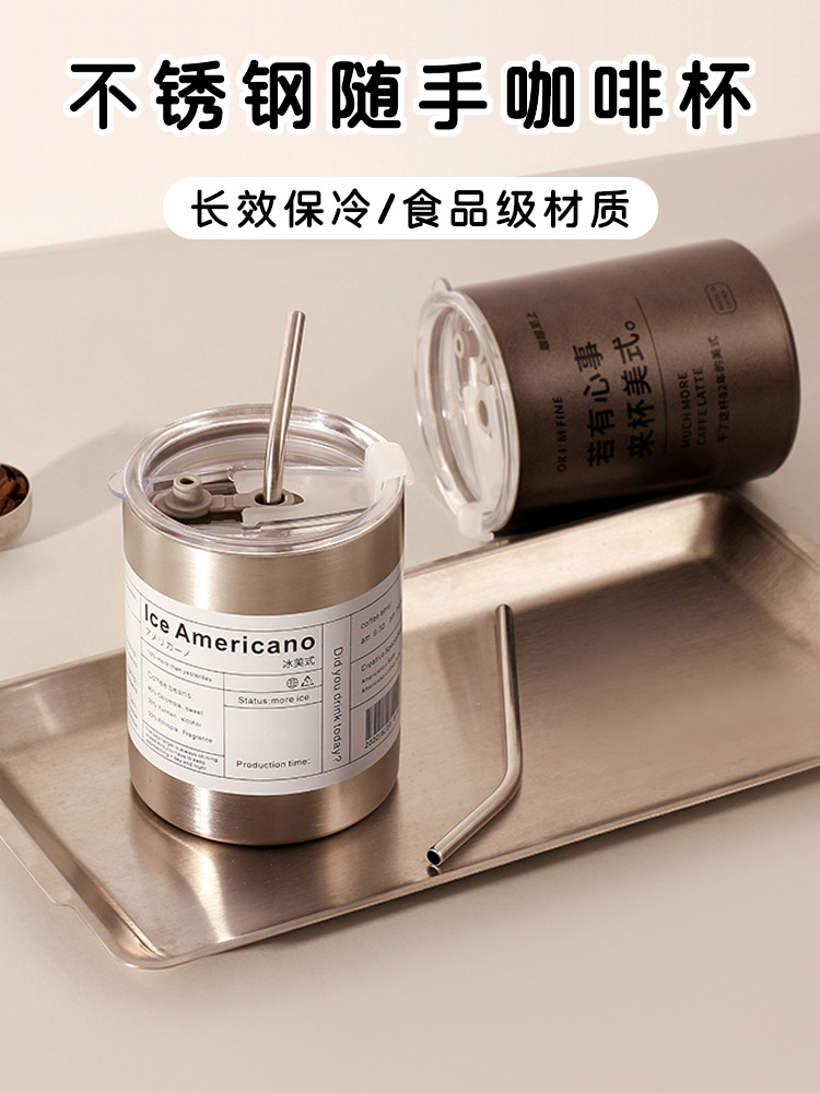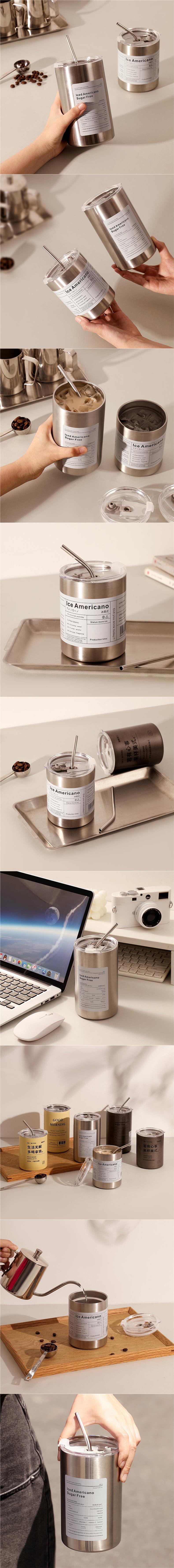 360ml ice american coffee cup steel color [send straw]]