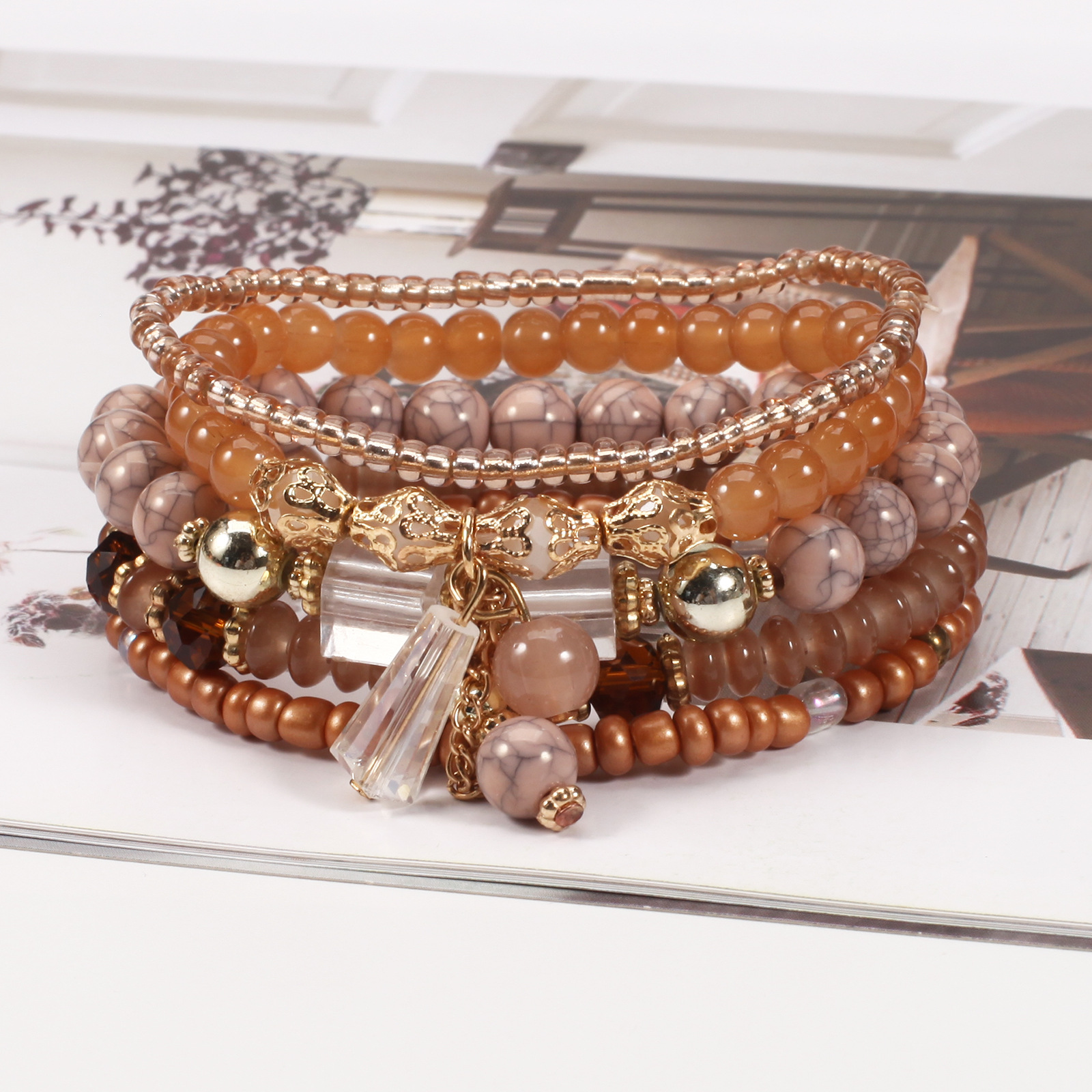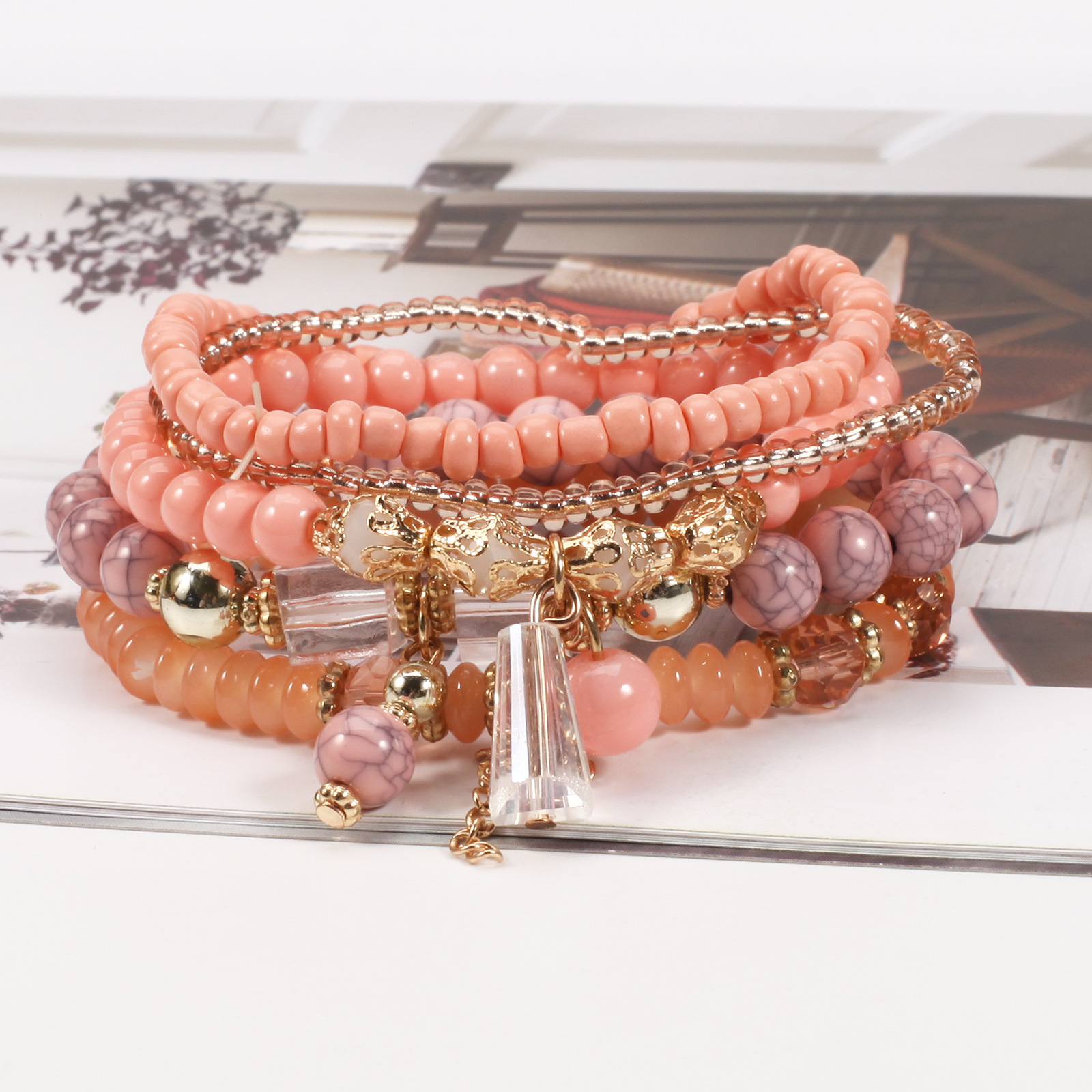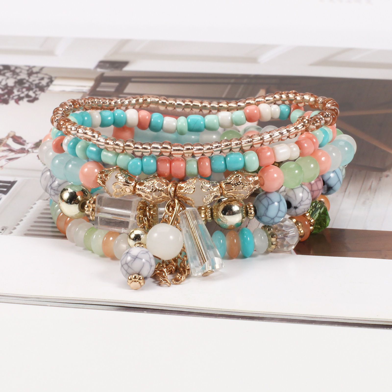 Bohemian Crystal Pendant Elastic Bracelet New Bracelet on Cross-border Platform
