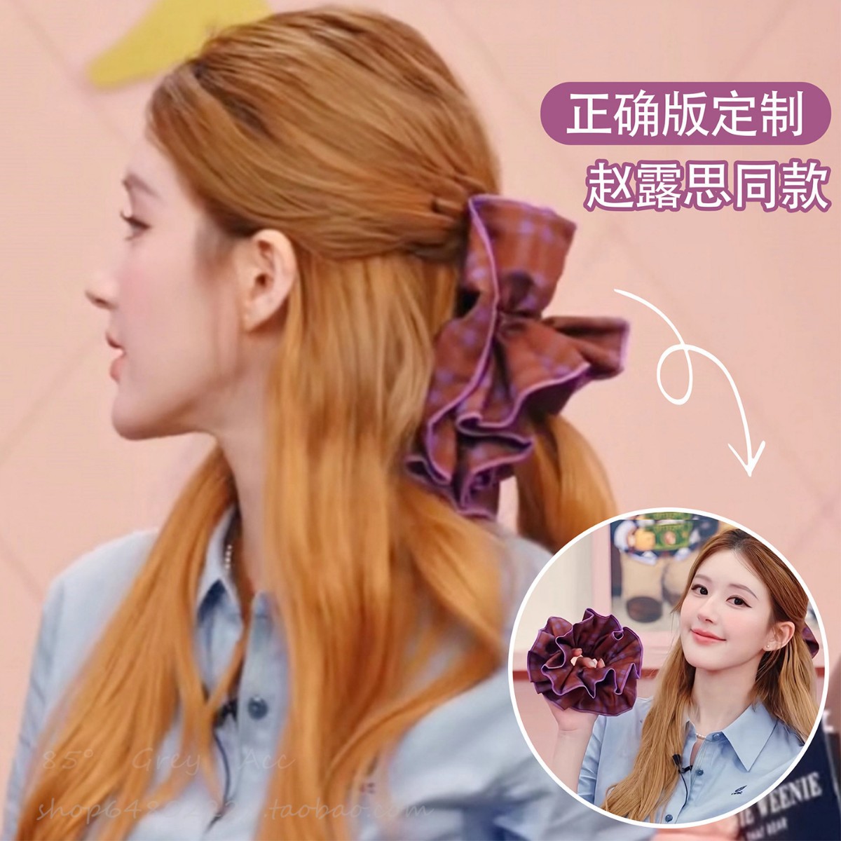 zhao lusi same korean style plaid headdress flower large intestine hair band women's high-grade hair rope ponytail bun hair rope hair accessories
