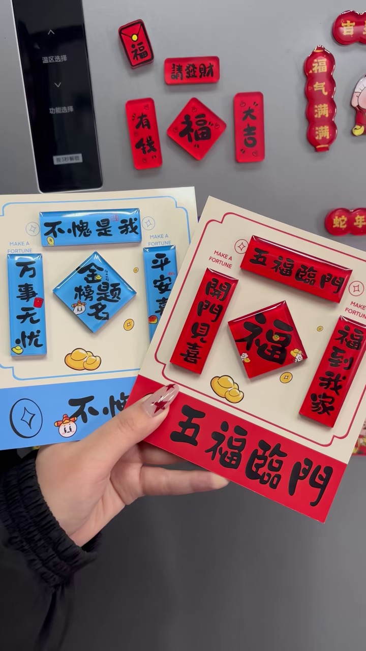 acrylic new year couplet refridgerator magnets mini couplet fu character refridgerator magnets 2026 horse year magnetic suction fridge decoration stickers