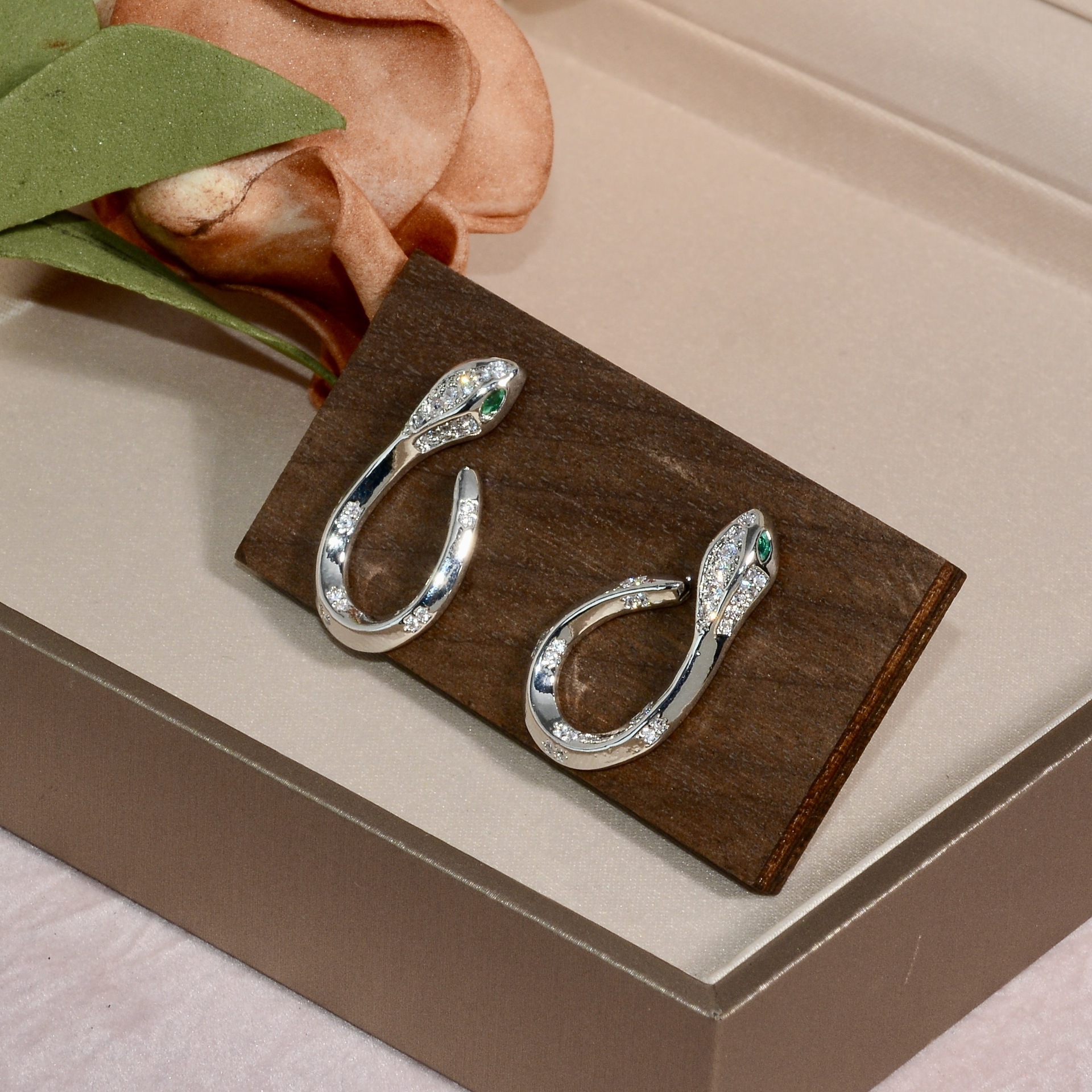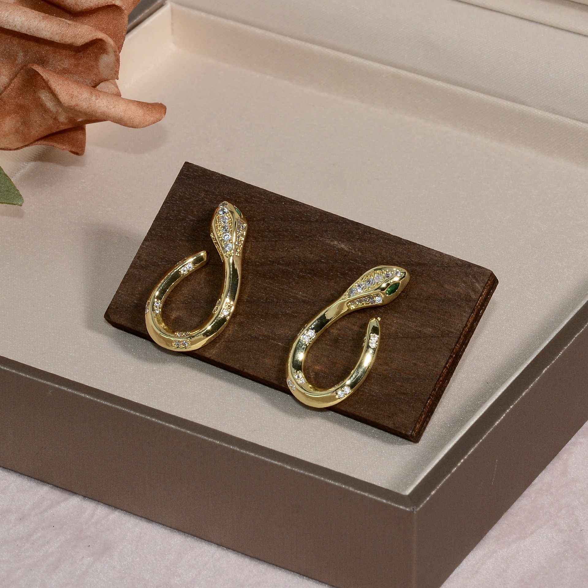 european and american amazon popular gold-plated green eye snake-shaped earrings slightly inlaid zircon light luxury high-grade niche earrings earrings