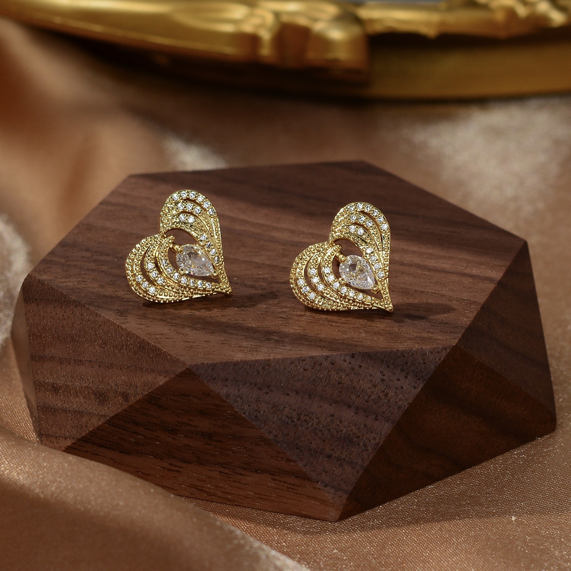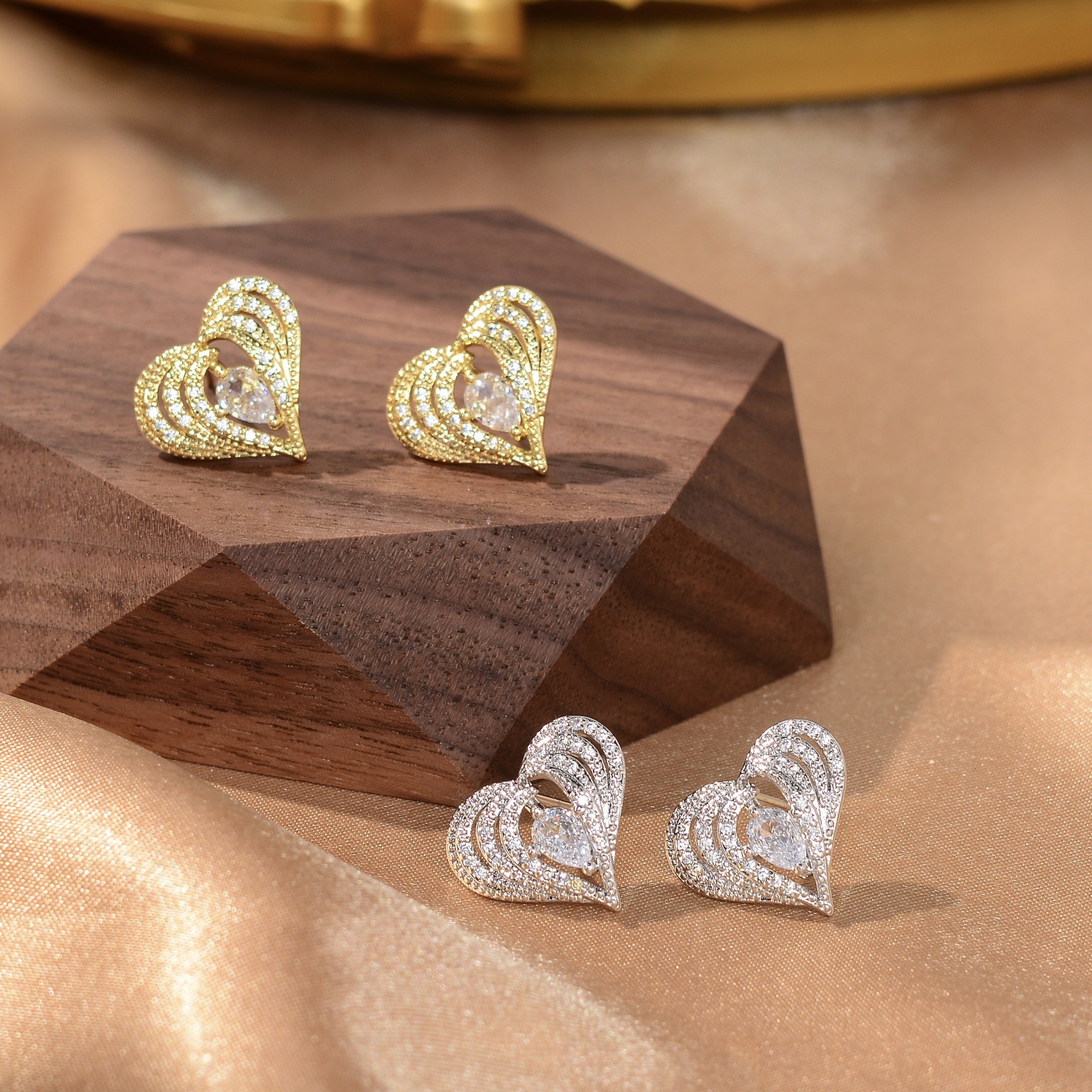korean style new micro inlaid zircon light extravagant love heart hollow stud earrings high-grade personalized minority heart-shaped ear studs earrings for women