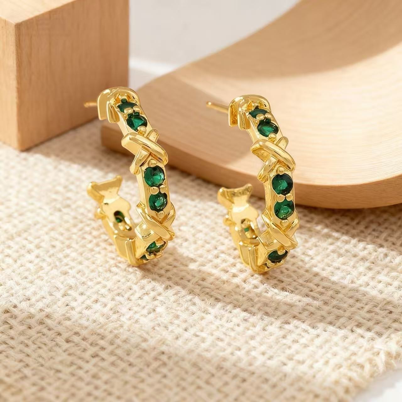 exquisite light luxury micro-inlaid color zircon c- ring earrings cold style personalized niche design fashion all-matching european and american ear ring