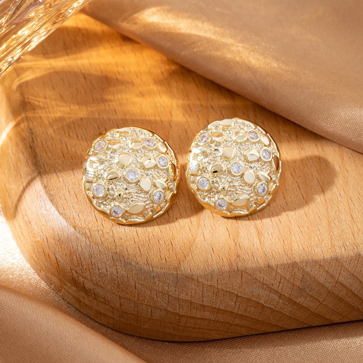 cross-border european and american personalized metallic round earrings inlaid zircon european and american style exaggerated and personalized special-interest design earrings for women