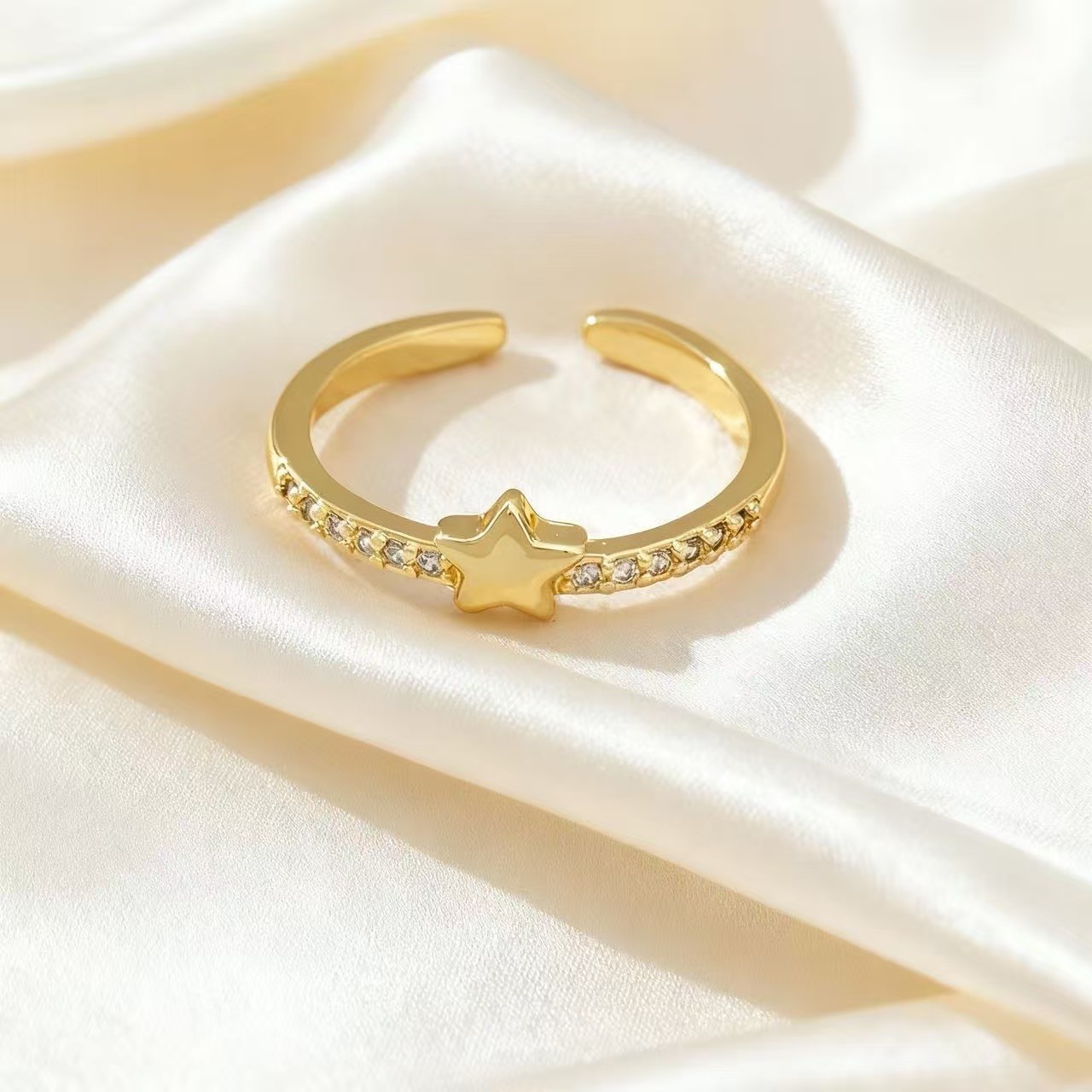korean style new star minimalistic simple bracelet open ring micro inlaid zircon exquisite five-pointed star adjustable index finger ring