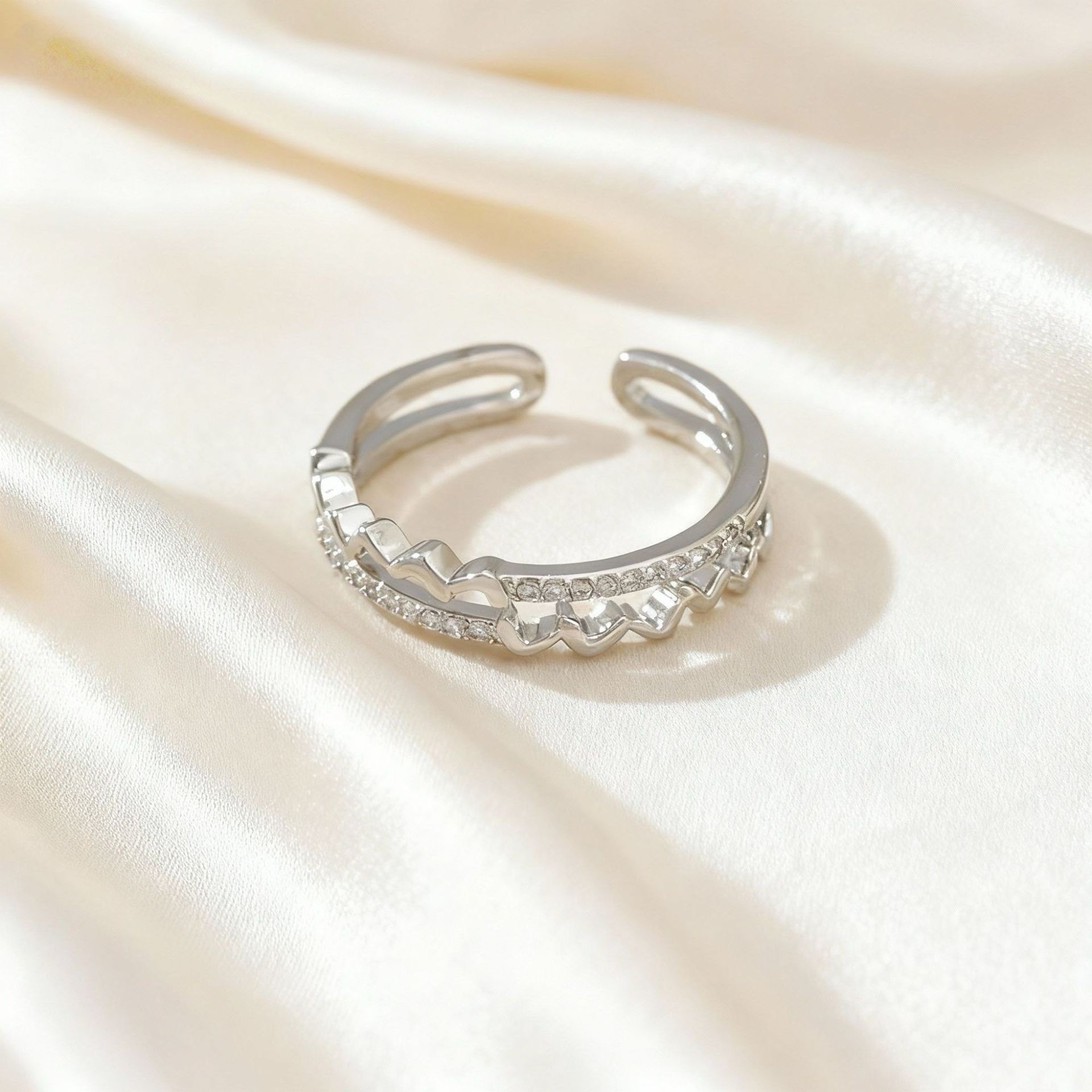 simple double-layer zircon wave open ring women's light luxury high-grade diamond-embedded all-match adjustable tail ring ring