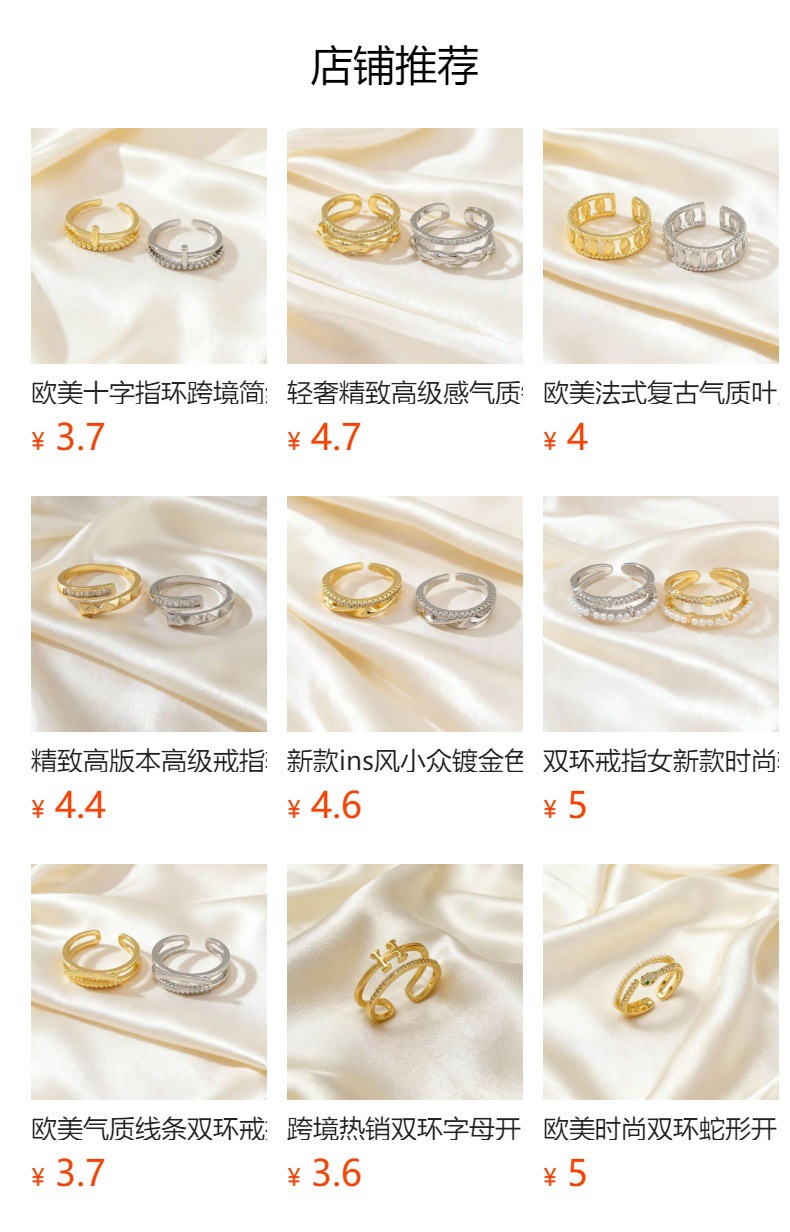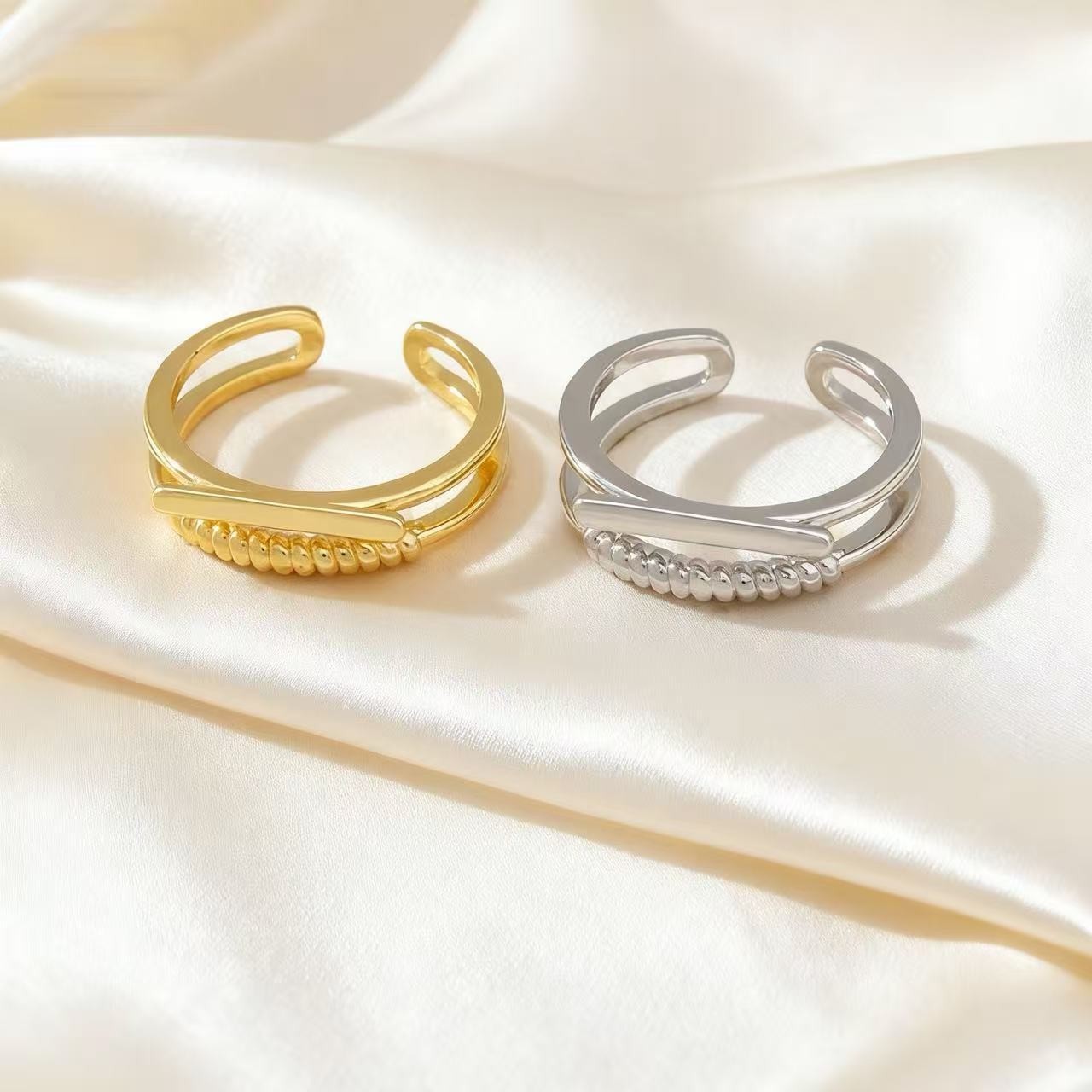 korean style fashion double-layer open ring cold style personalized niche design double ring adjustable tail ring ring