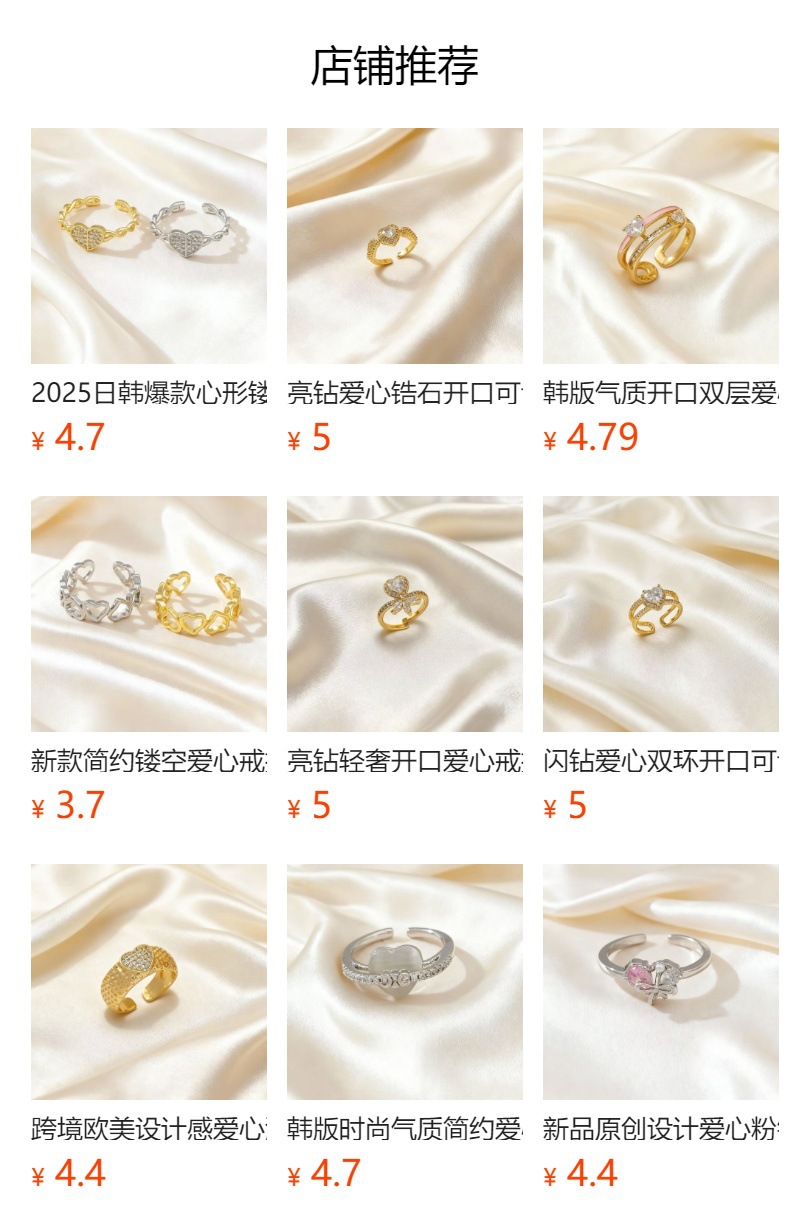 cross-border light luxury double-layer zircon heart-shaped open ring light luxury high-end fashion all-match personality ring bracelet