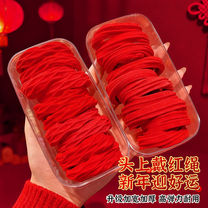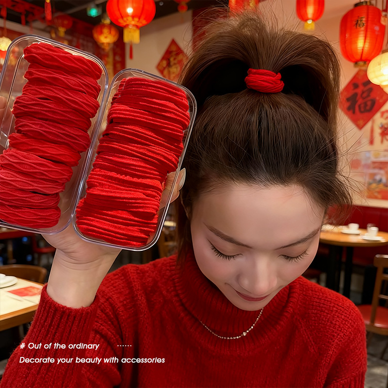 red new year high ponytail hair string 2026 new high elastic durable rubber band female hair ring head rope leather case