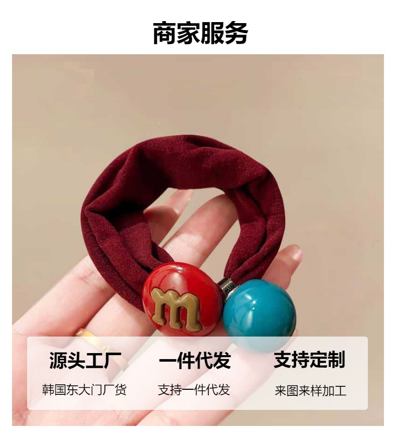 korean style letter ball hair band women's high sense tie up a bun hairstyle hair rope 2025 new candy color hair rope wholesale
