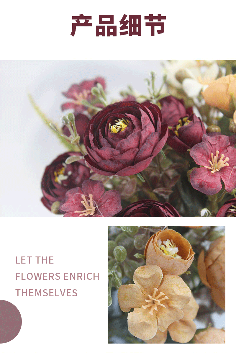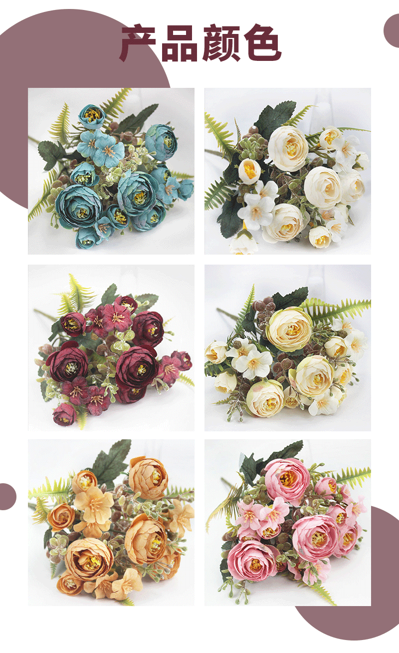 Specification: There are 4 large flowers, 6 small flowers, and 6 small tea roses.